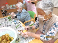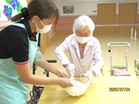 七夕レクリエーションではフルーツとゼリーを使ったデザートを作りました。