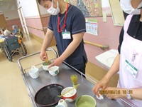 お抹茶の味と香りで癒され、茶巾で癒され。