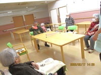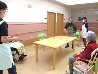 最初は座って始めた入居者様ですが、最後は立ち上がってボールを返していましたよ♪