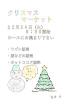 12/24に行うクリスマスマーケットのポスターをぬり絵にして、入居者様に色付けをしてもらったので紹介します。
