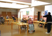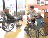 ホールに集まってみんなで体操をしたり、入居者様それぞれに合わせた個別のリハビリをしています☆