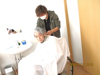 美容師をされている息子様が、入居されているお父様のヘアカットをされていました☆