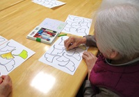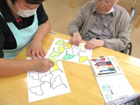 イチョウの葉に色を付けています。