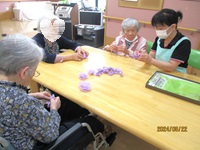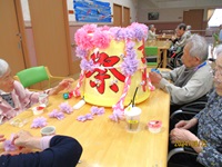 このお花を何に使うかというと、夏祭りのお神輿に飾り付けますよ♪