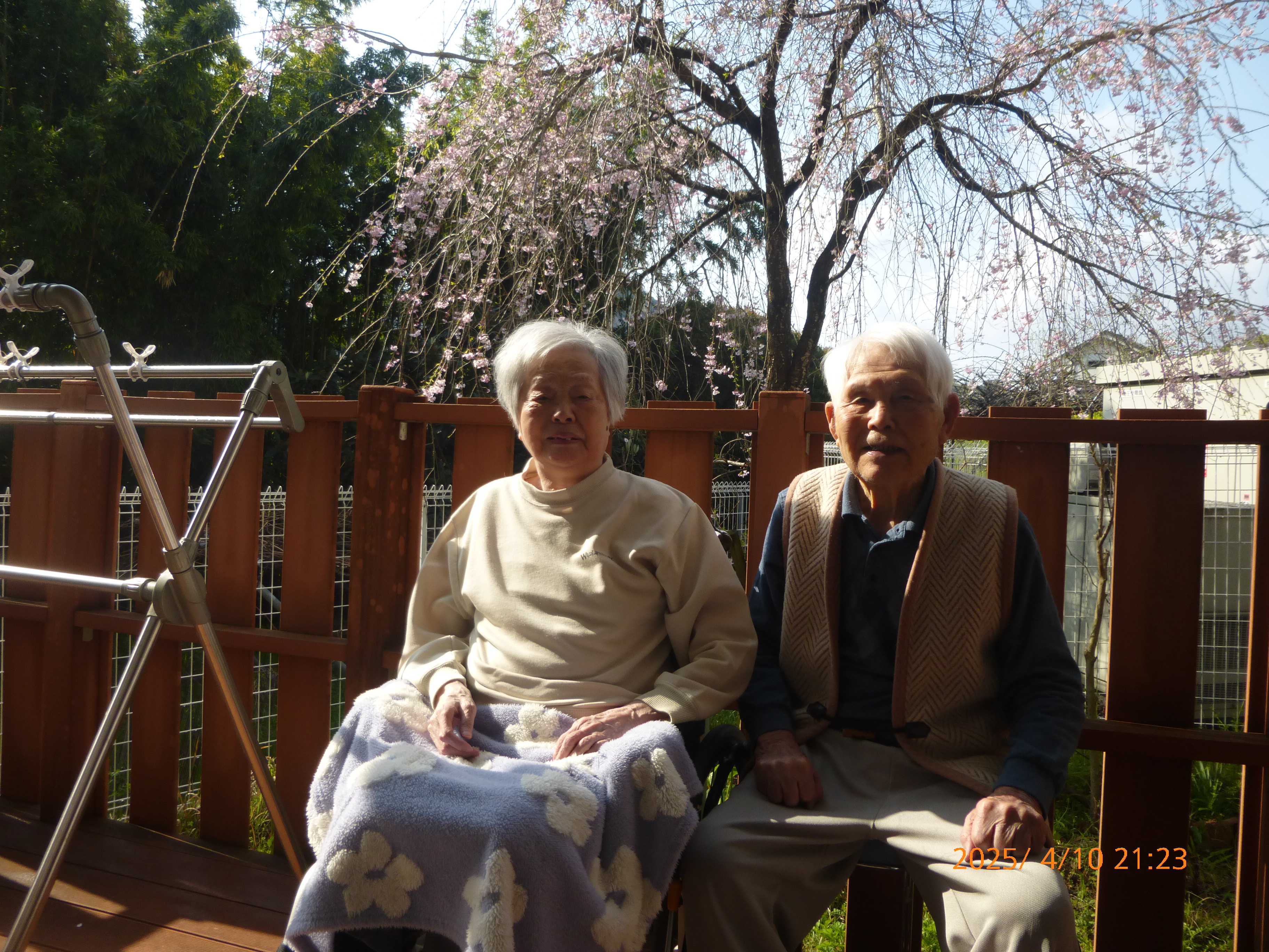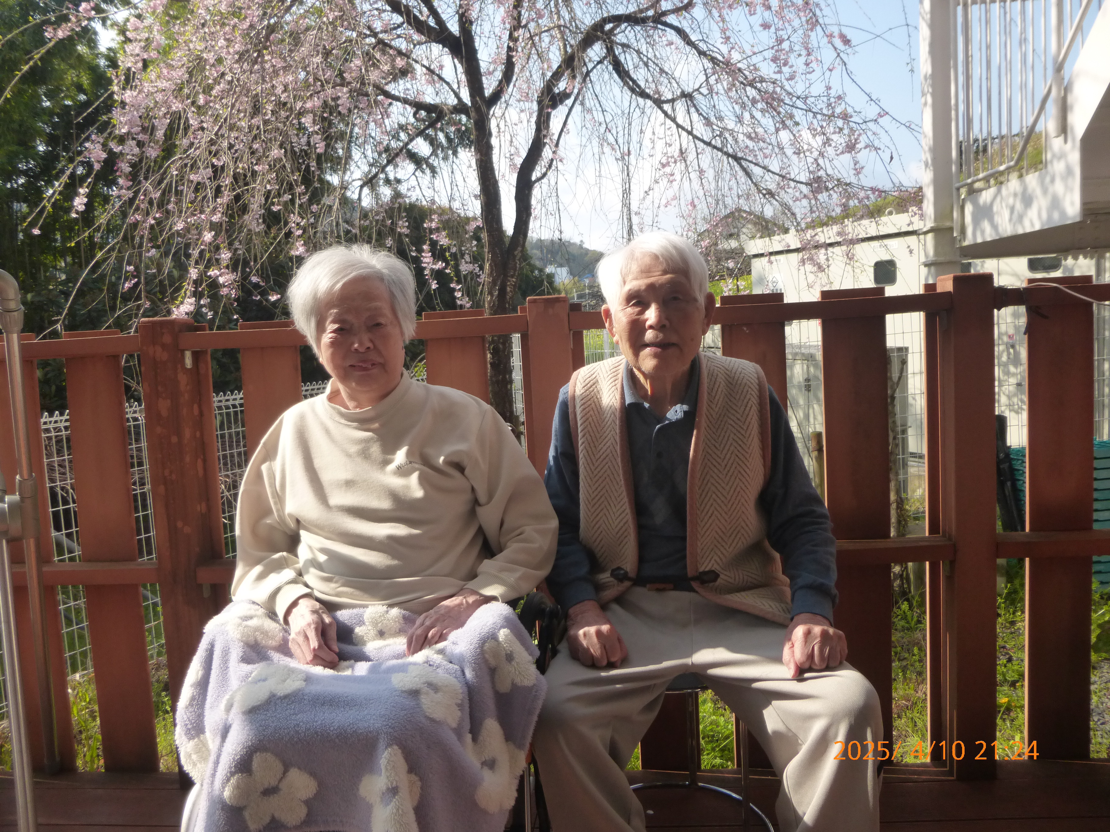 施設内ベランダ前の枝垂桜がきれいに咲いた為 ご紹介させて頂きます。