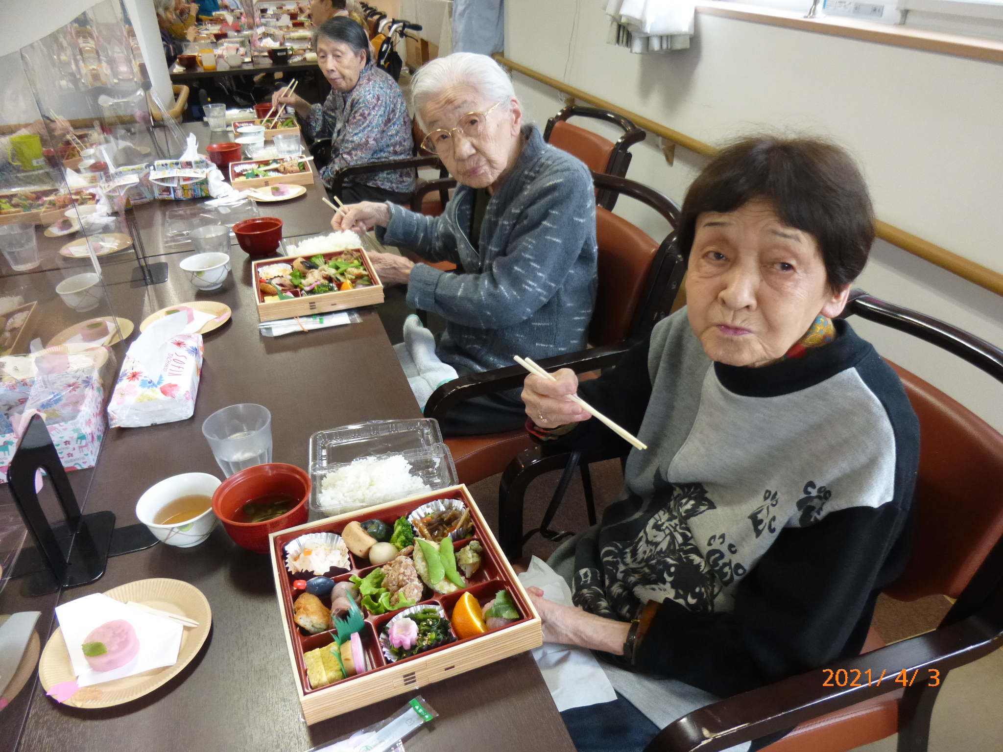 彩り鮮やかなお弁当に皆さんの笑顔にも花が咲いていました。