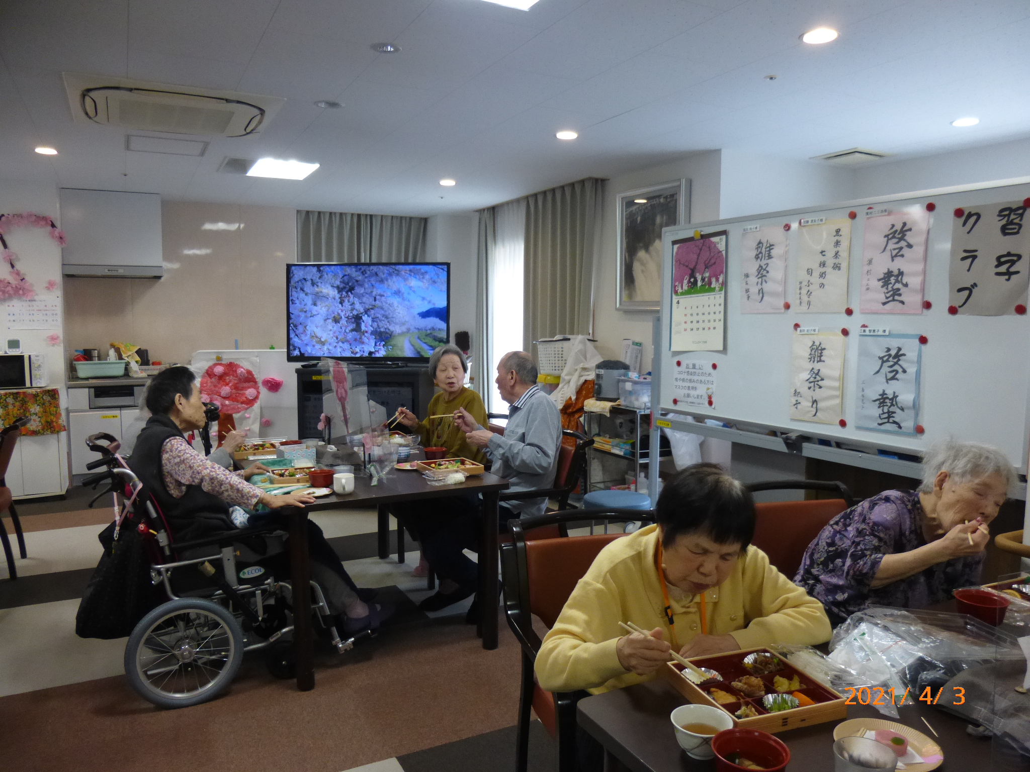 昼食に、ご近所の大石家さんのお花見弁当を注文して