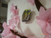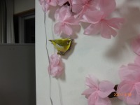 平面の桜の幹が、立体化したのに続き、今度は桜にとまったメジロまでが立体化