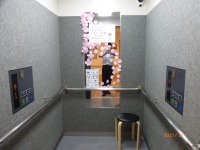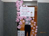 エントランスに飾った雛人形にも桃の花を飾り付けて、ピンク色に染まった一日になりました。