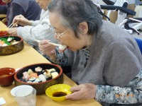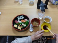 プレゼントは、希望者が一番多い『にぎり寿司』です!施設では、なかなか食べられないので、みなさん美味しそうに食べられます。