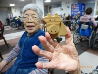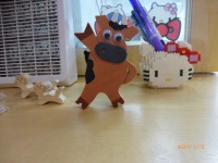 先輩の牛クンは、色つきカラーですが、今回は木目調で、ちょっと小さめです。