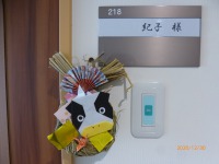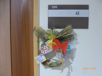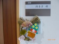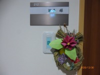写真は、スタッフが手分けして製作した〆飾りの一部です。入居者様の名札の下にそれぞれ一つずつ飾らせていただきました。
