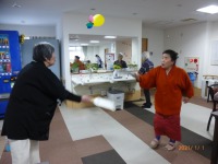 レクリエーションの第一部は、福笑いや羽子板、おじゃみ(お手玉)、ボーリングやドッチボール、第二部としてカラオケを楽しみました♫