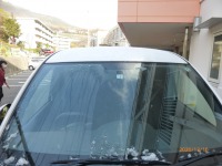 家の屋根や車の上にうっすらと雪がのってました。積もったっていうほどではないですが。