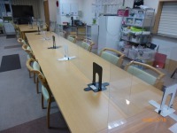 コロナウイルス感染防止用の透明なパーテーションを設置しました。