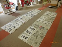 本日のデイサービスレクリエーションは、『書道』です。お題は、「霜柱」と「手袋」です。
