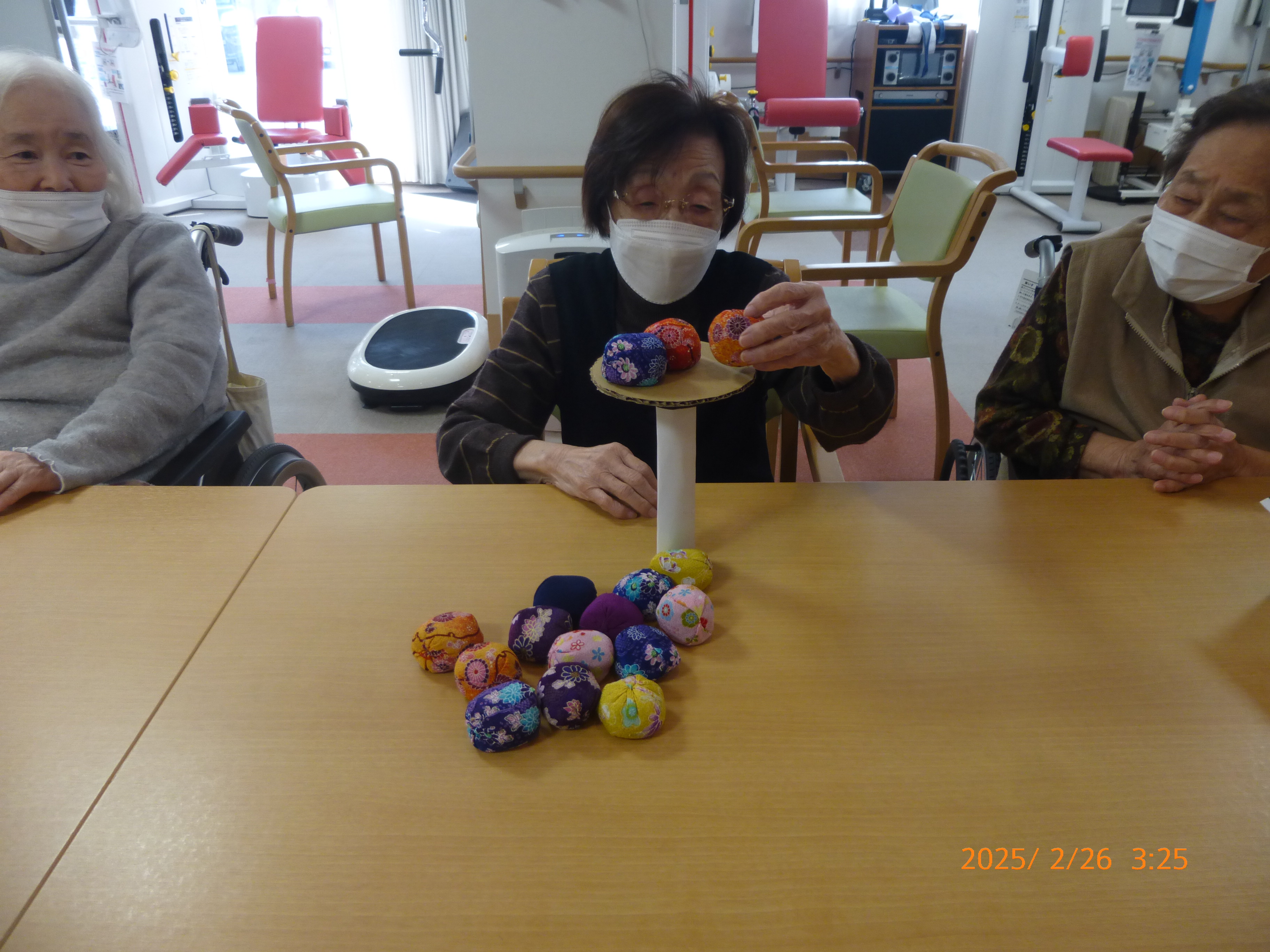 台の上にお手玉を乗せるレクリエーションですが、皆様とても集中して実施されておられました。