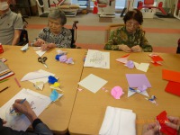 これは、色紙で作ったのですが、みなさん上手に折ったり切ったりで、立派な壁飾りができあがりました。