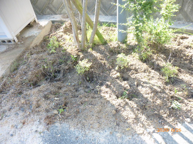 花壇をキバで掘り返して、土の中にいるミミズを狙います。機械で掘り起こしたぐらい深く掘って、ぐちゃぐちゃになってしまいました。