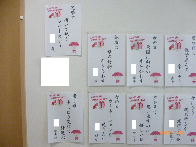 今年は、コロナウイルスの感染防止のため、面会制限中となり、お母様(祖母様)にお会いしていただくことができず、TELやFAXで感謝の気持ちを伝えるのみとなり、申し訳なく思います。