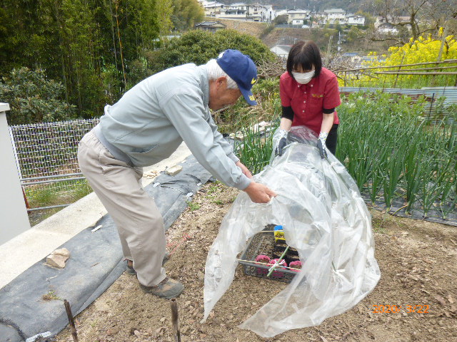 近所のおじさんの協力を得て、さて、何を植えたでしょう?