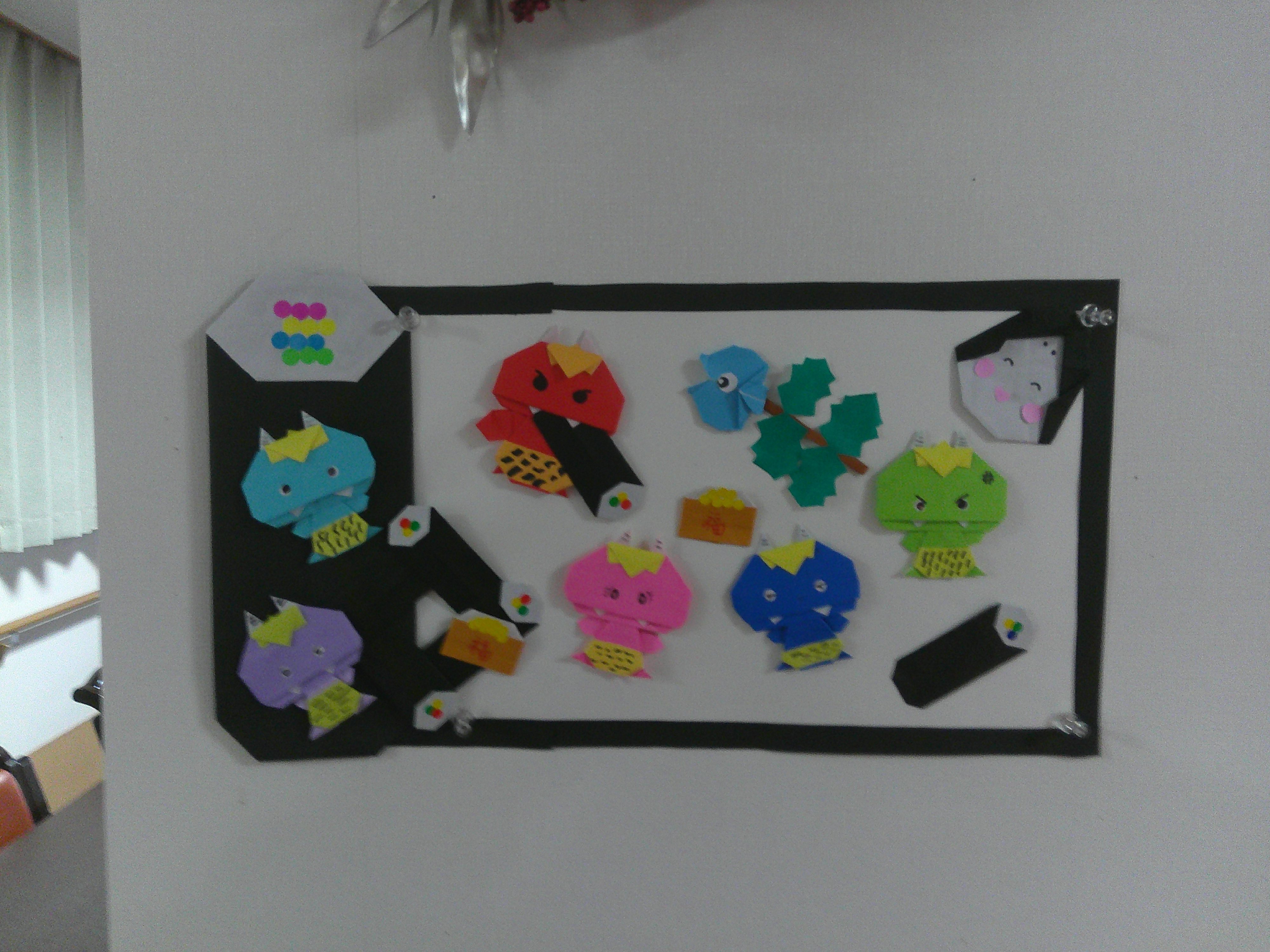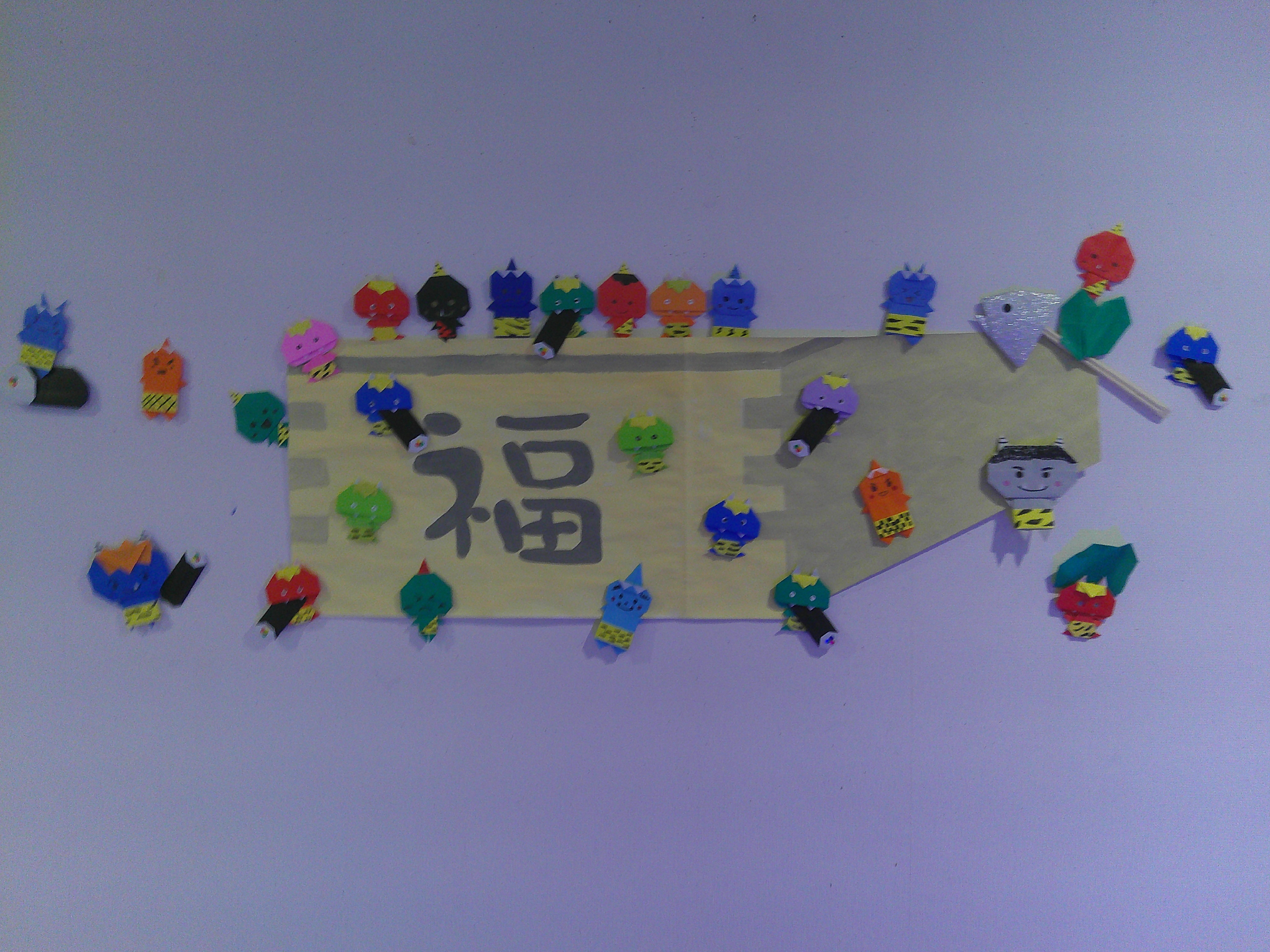 今回は節分も近い為 鬼さんと恵方巻を折り紙で製作させて頂きました。