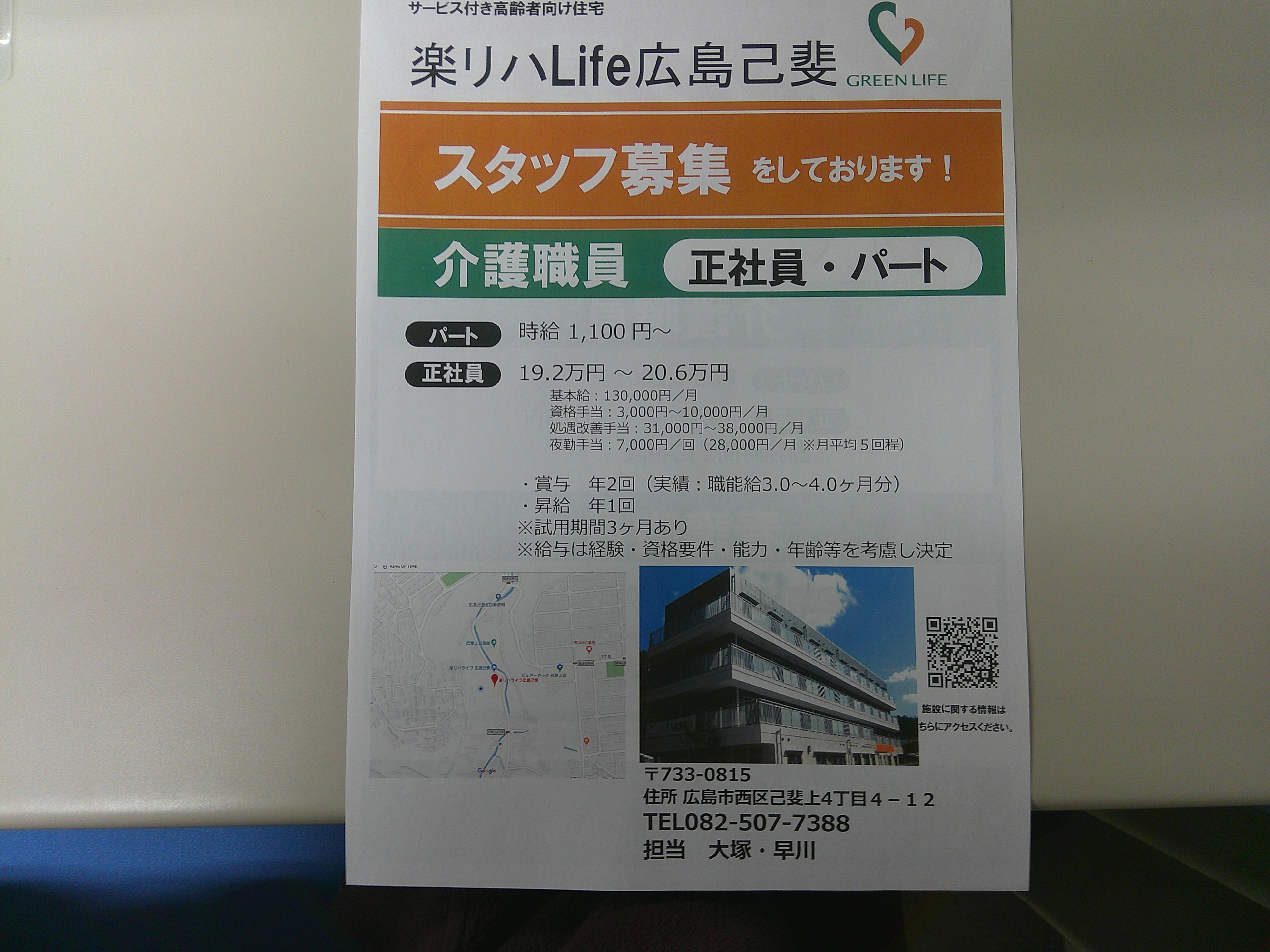 楽リハLIFE広島己斐で一緒に働いていただける、介護職員を募集しております。