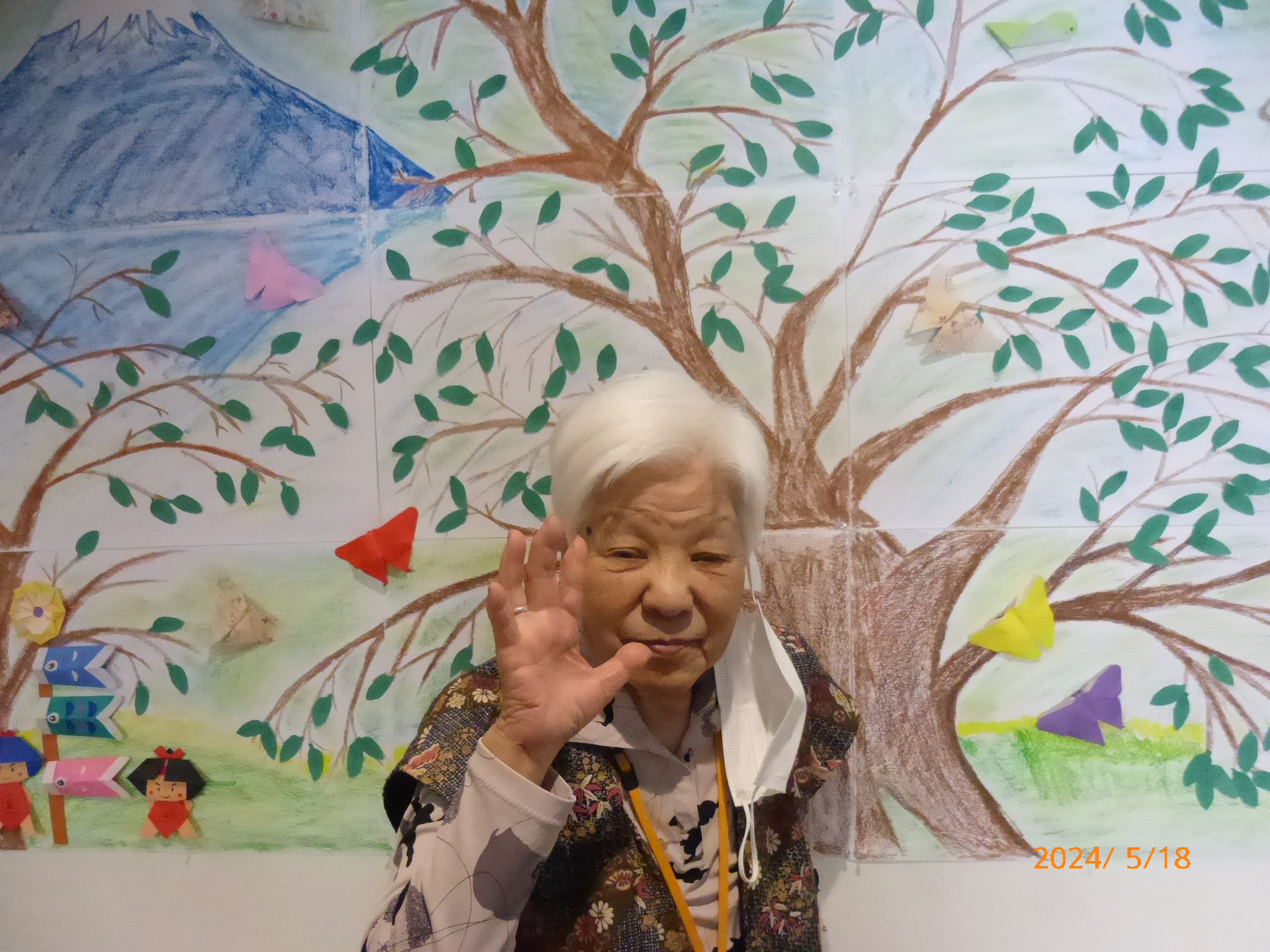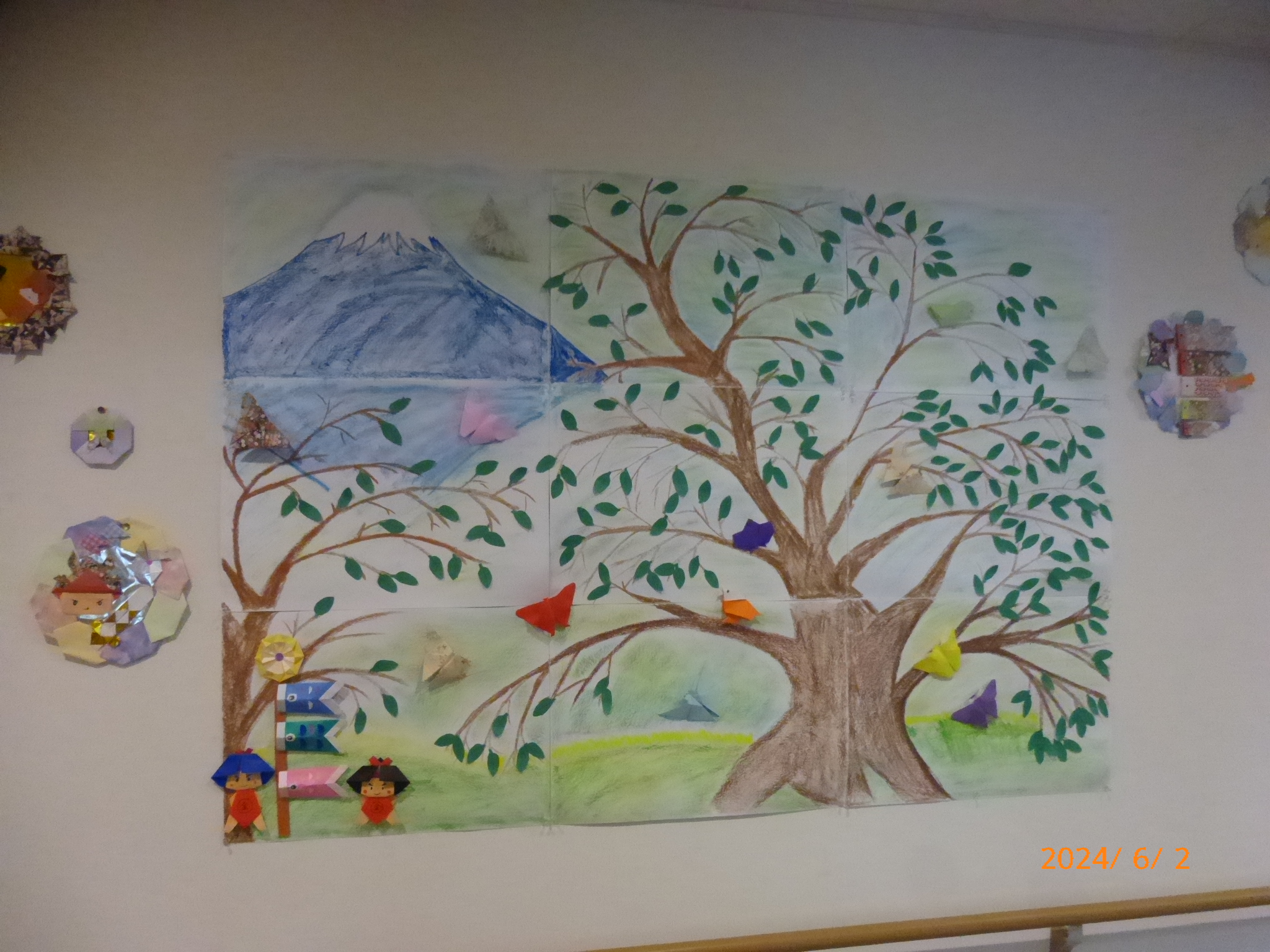 職員の力作にて、正面入り口の壁紙のデザインを変更させて頂きました。