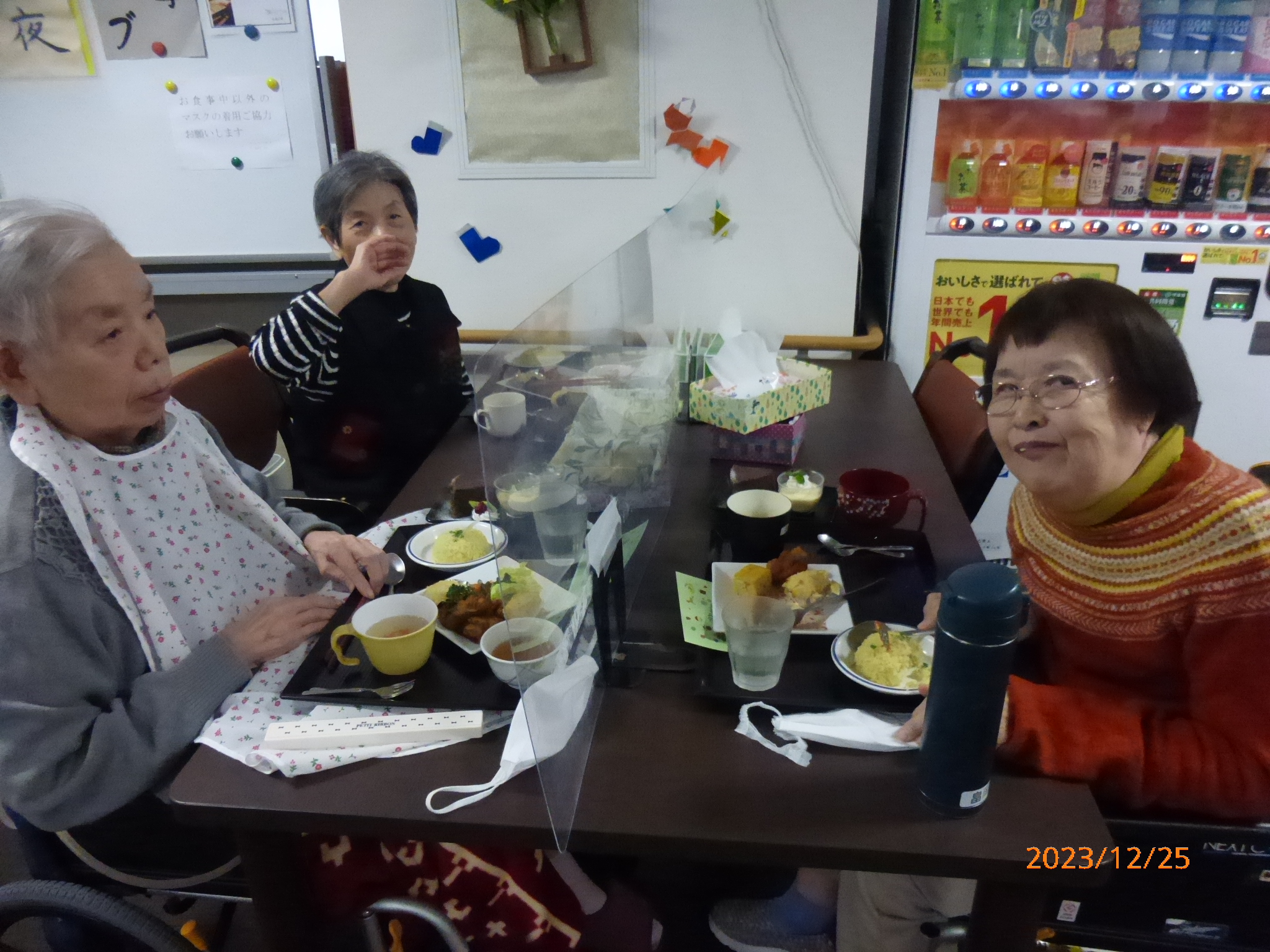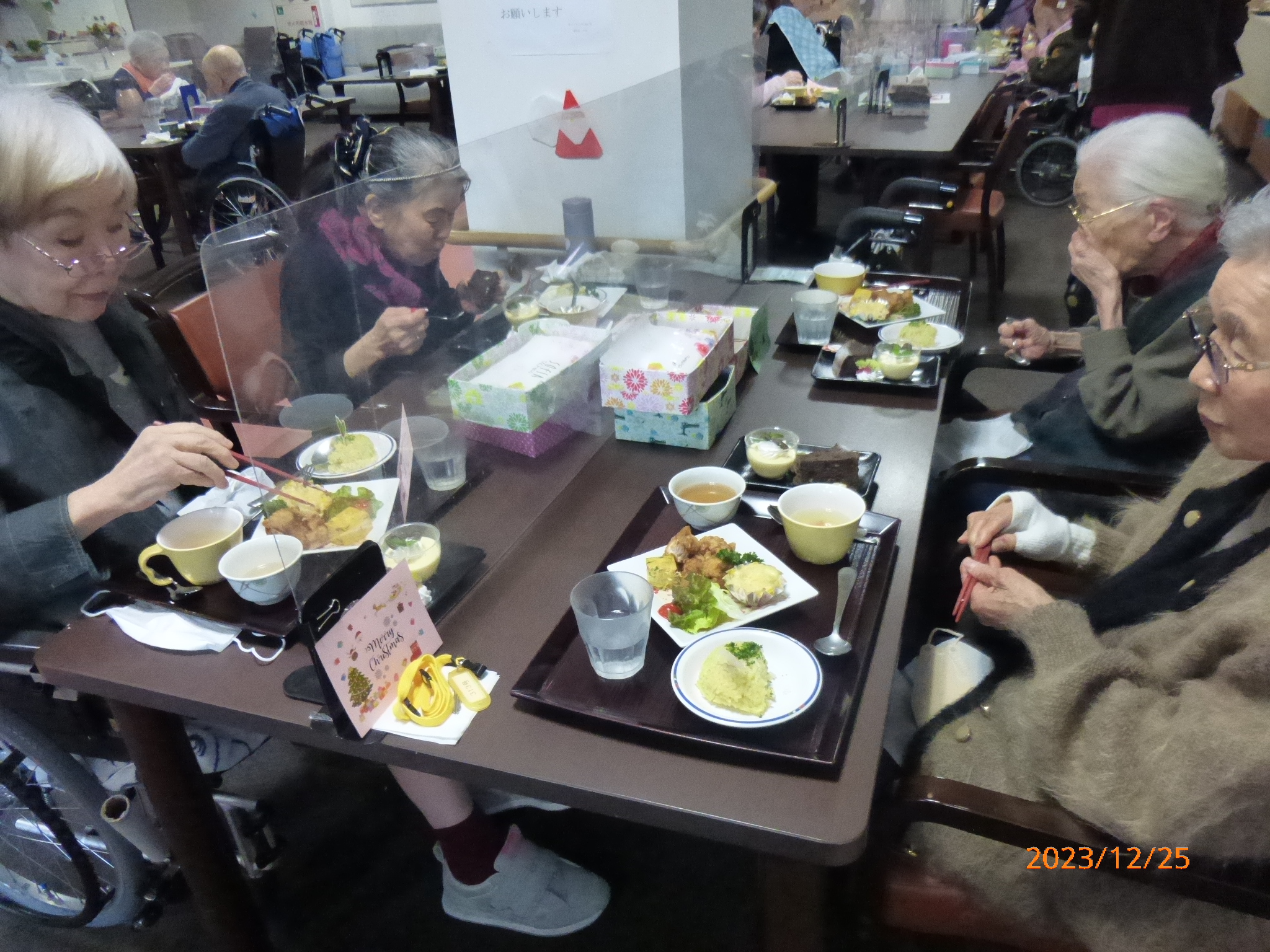 12月25日にクリスマス会とイベント食を合同にて開催させて頂きました。