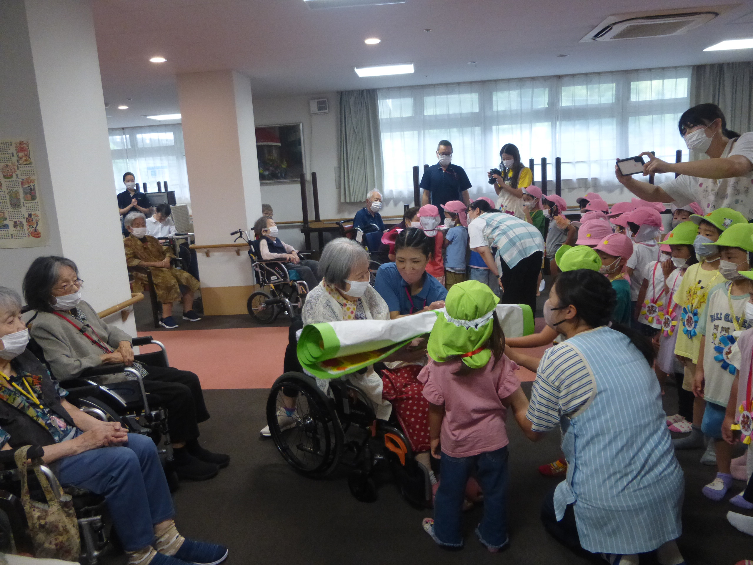 ご入居者様も園児と一緒に手遊びなどをして楽しんでおられました。