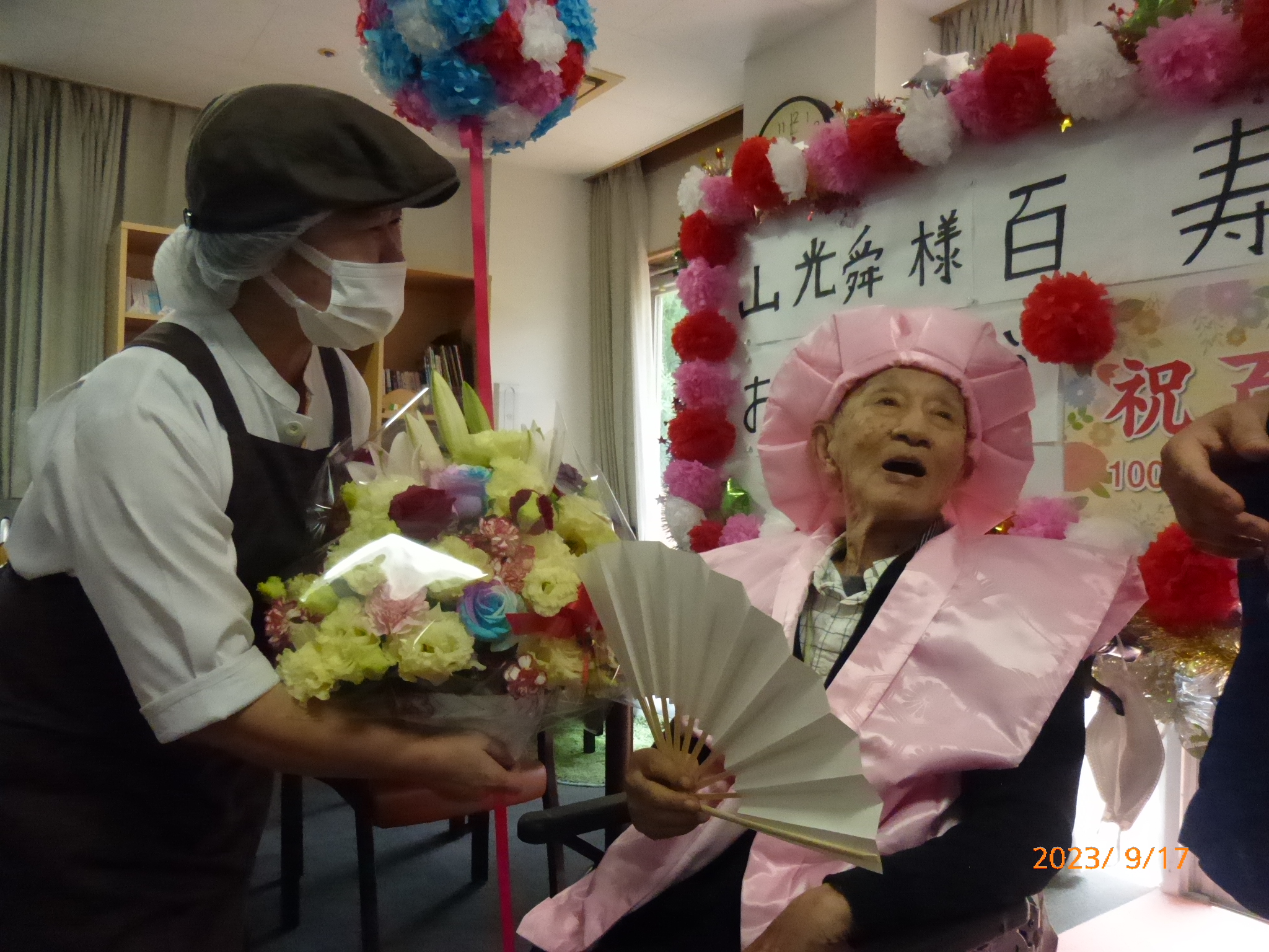 本日 敬老の日を前に今年 100歳を迎えられた方のお祝いをさせて頂きました。