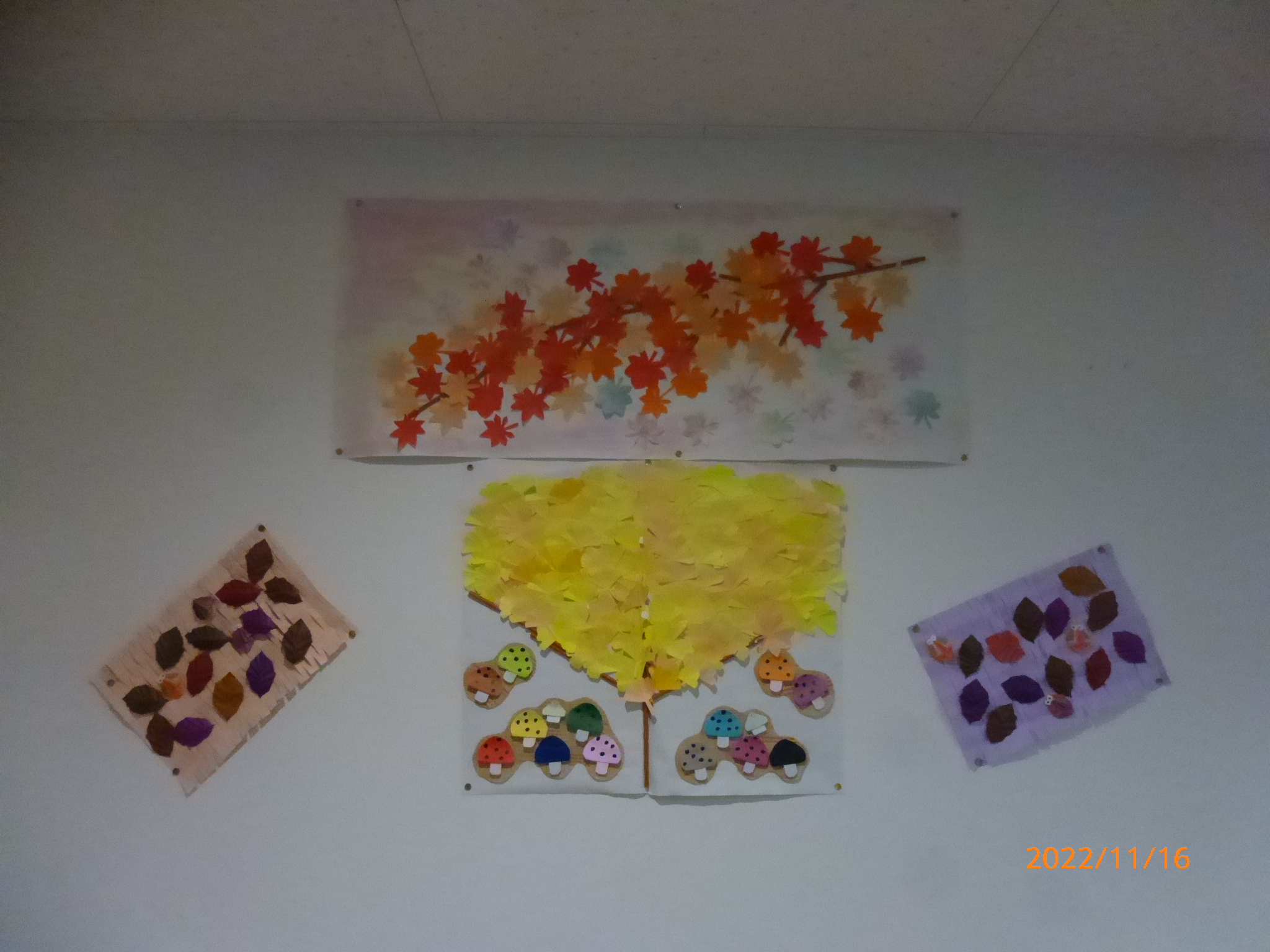 正面入り口の飾りが秋バージョンにリニューアルさせて頂きましたので