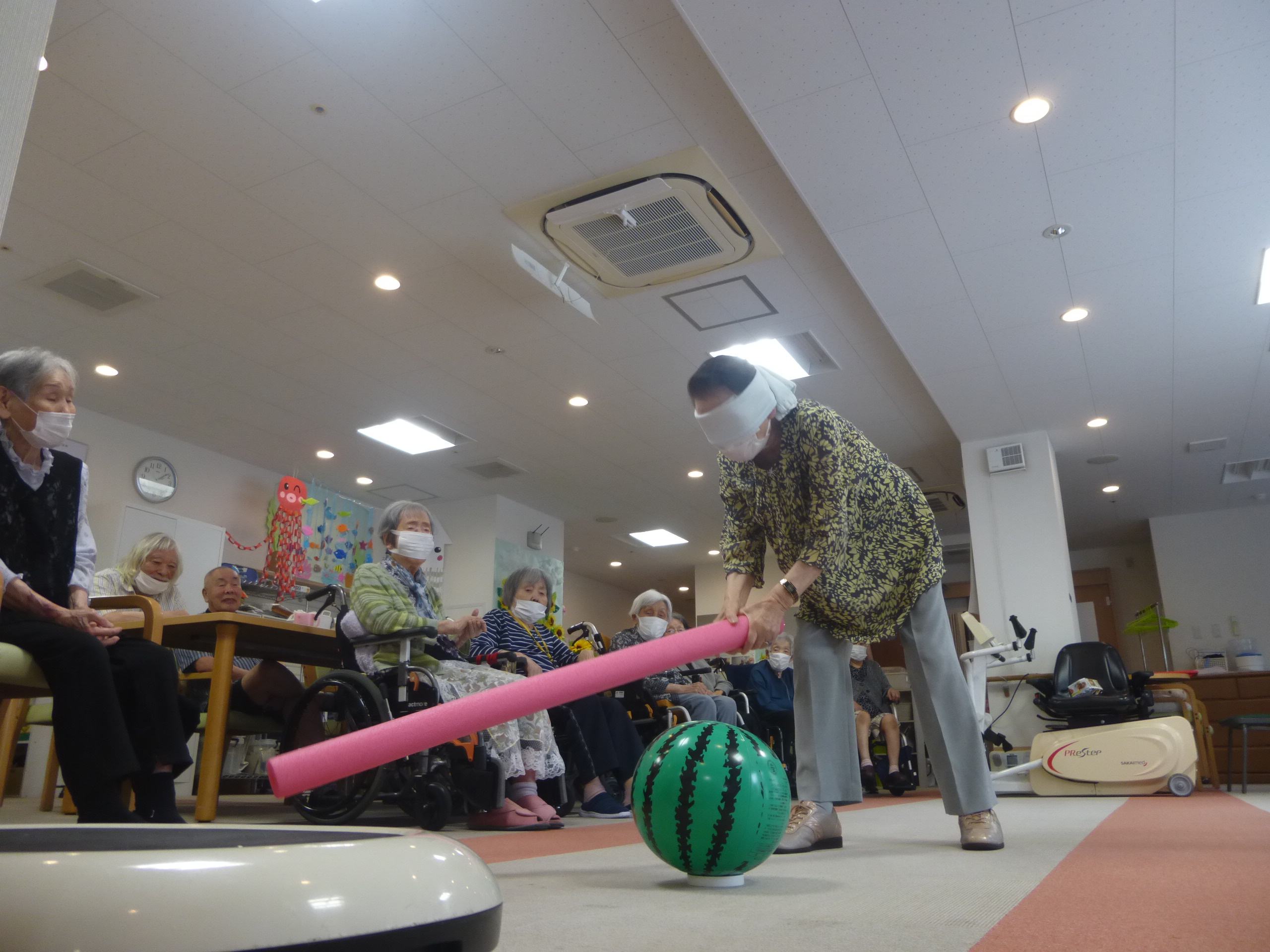先日 併設のデイサービスにてスイカ割りを実施させて頂きました。