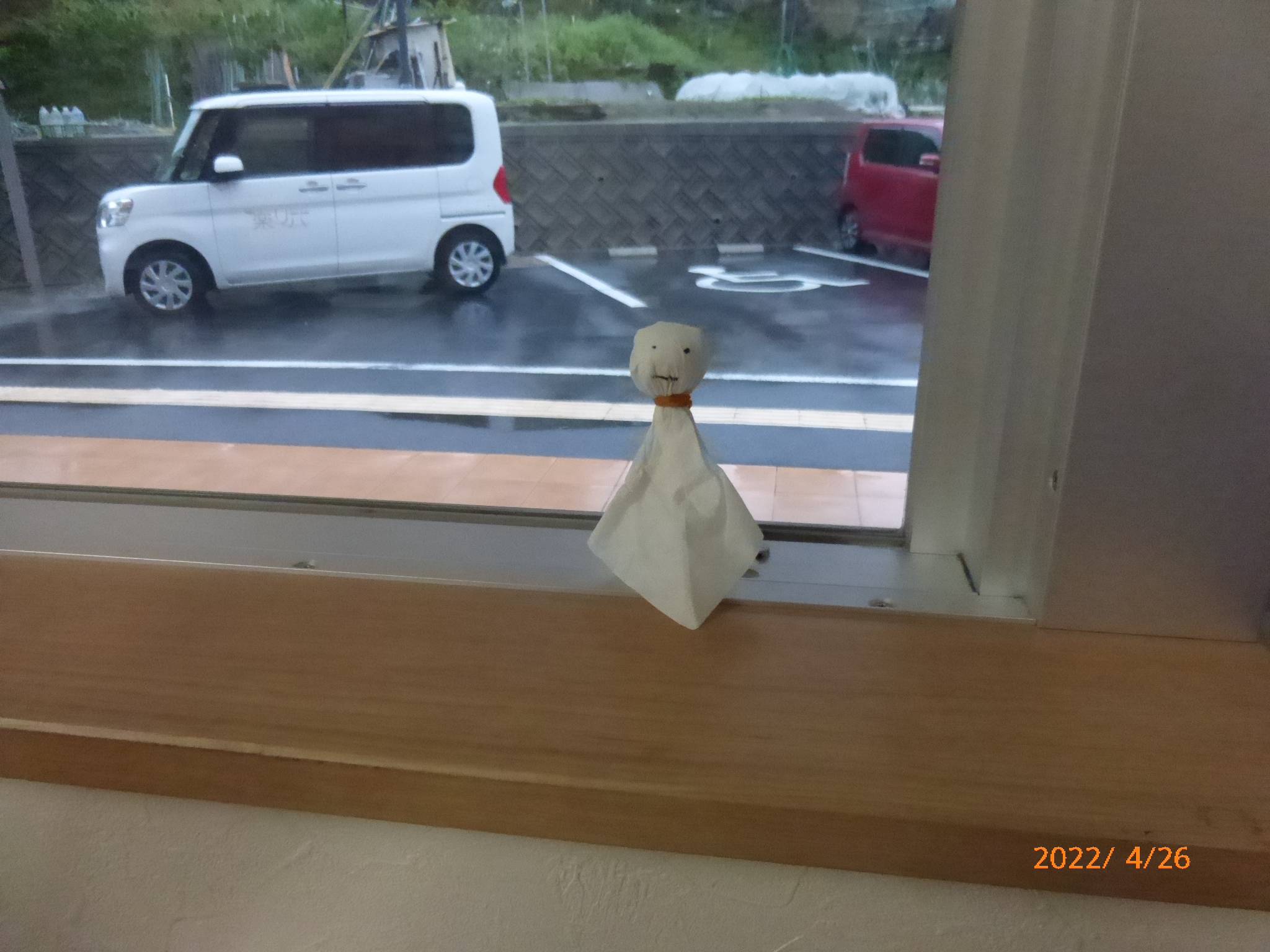 ご入居者様が、明日運動ができますようにと、テルテル坊主を作っておられました。