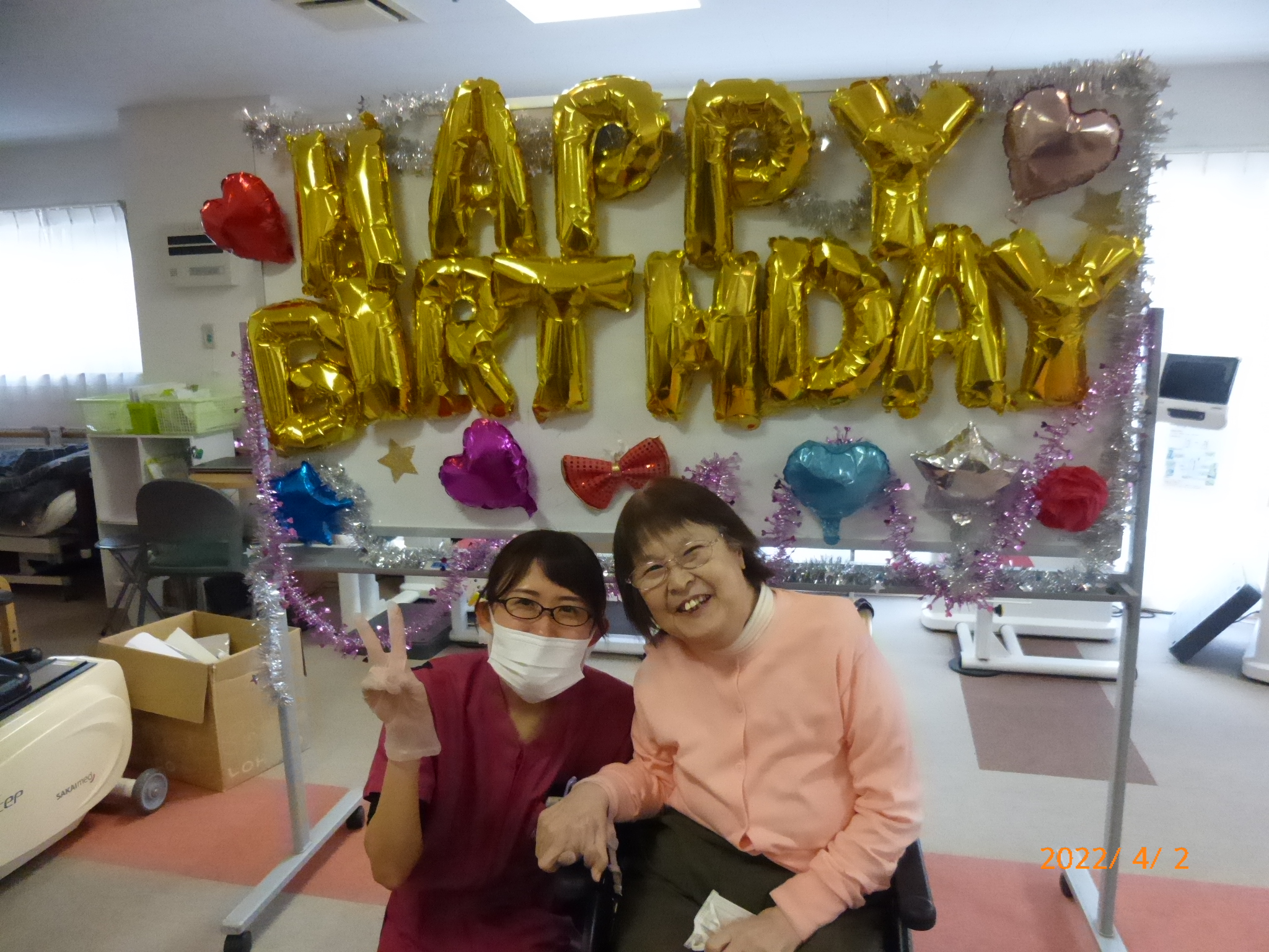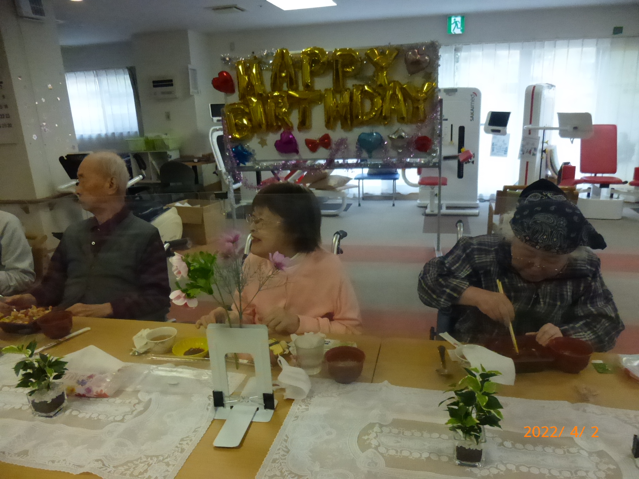 楽リハライフ広島己斐では4月2日 3月・4月がお誕生日の方を対象に