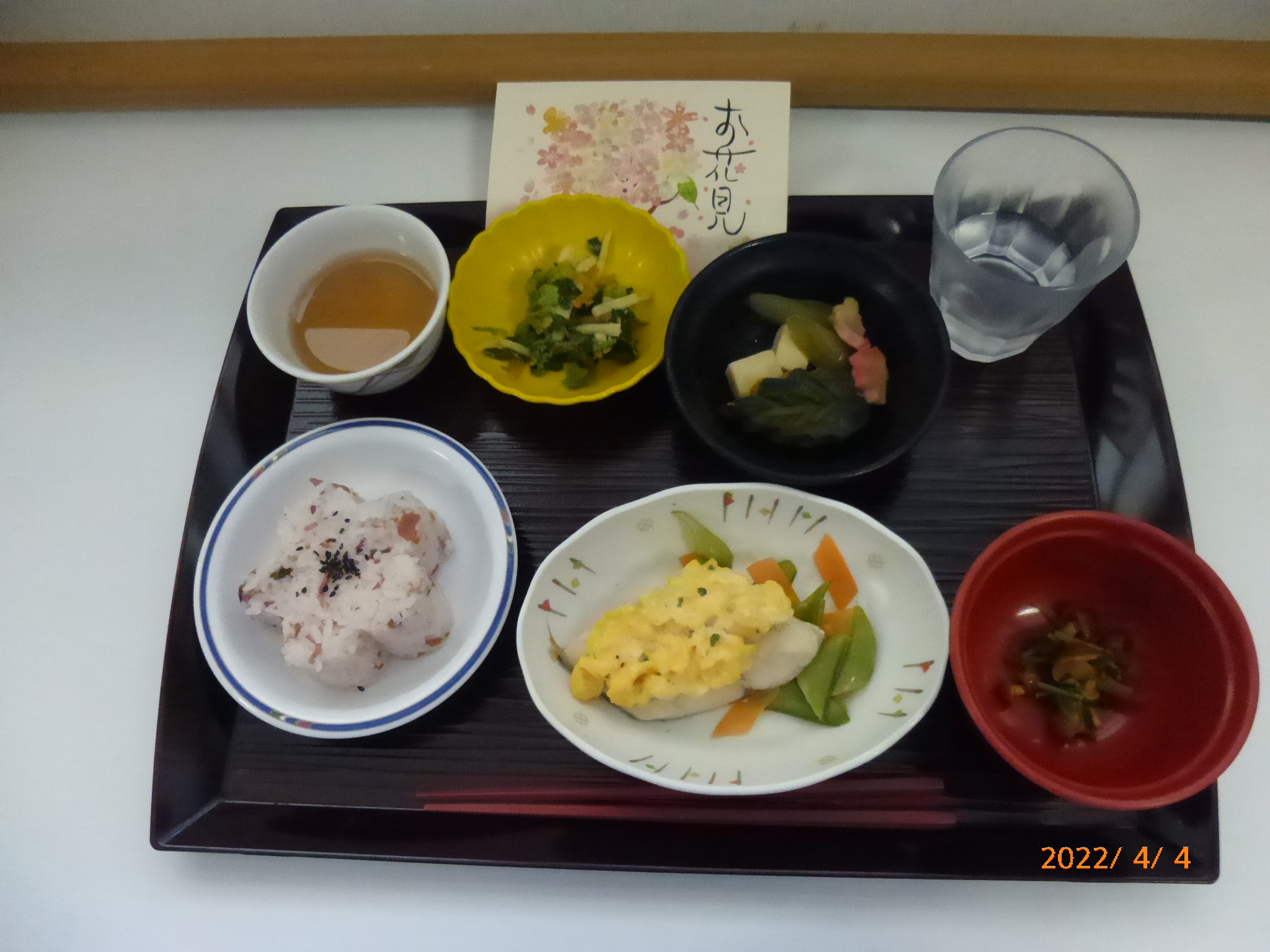 ご入居者の皆様 桜ご飯がきれいと喜んで食べておられました。