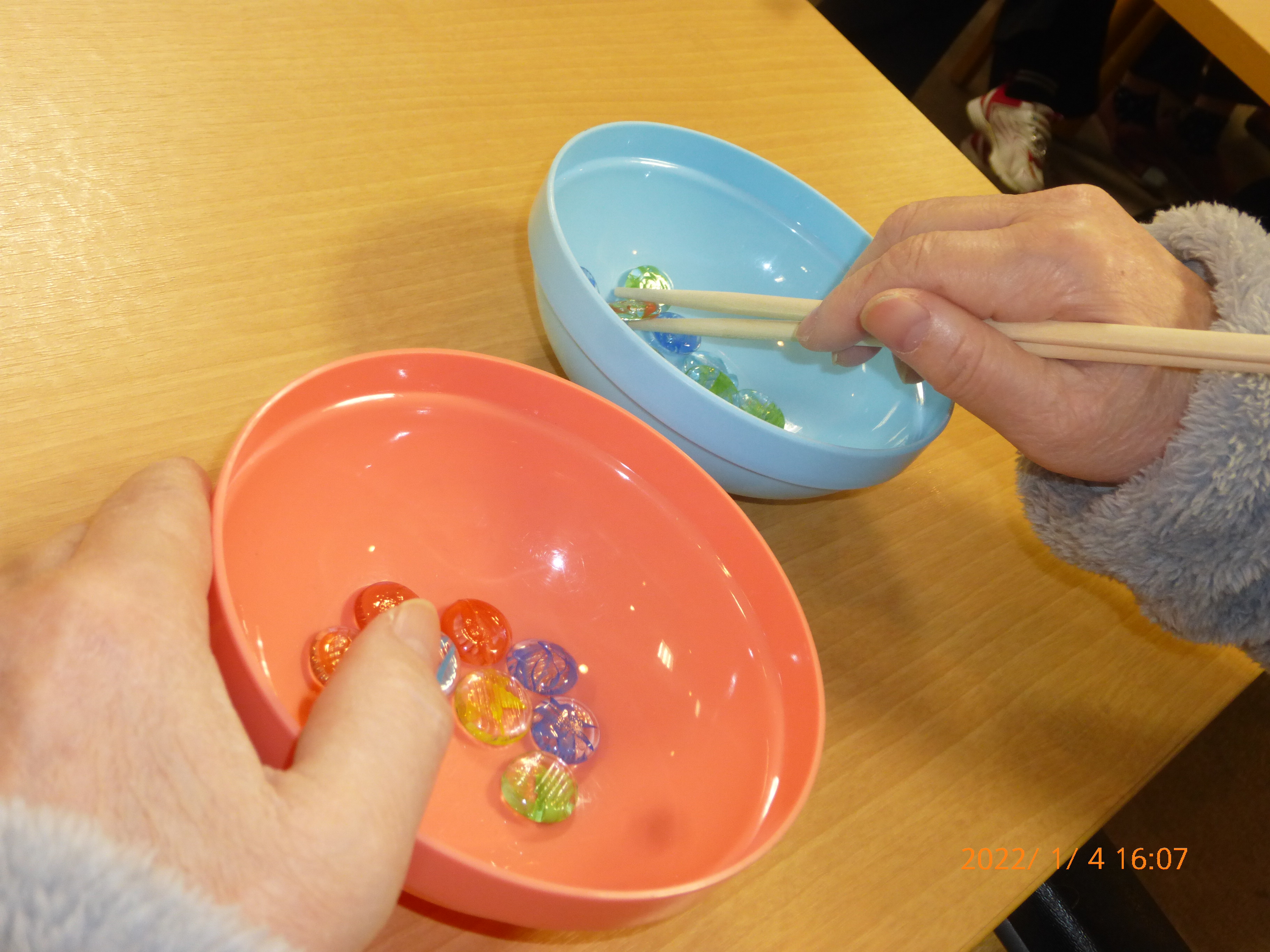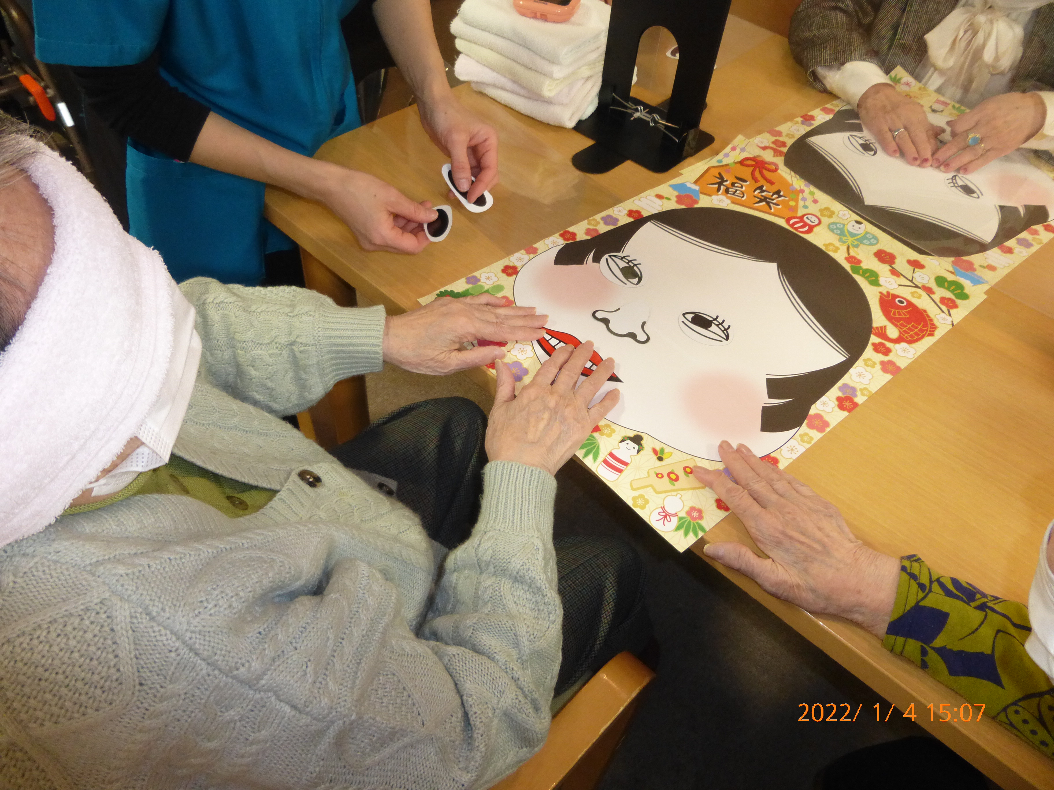 午後のレクリエーションではお正月遊びの福笑いなどを皆さん上手に作っておられました。