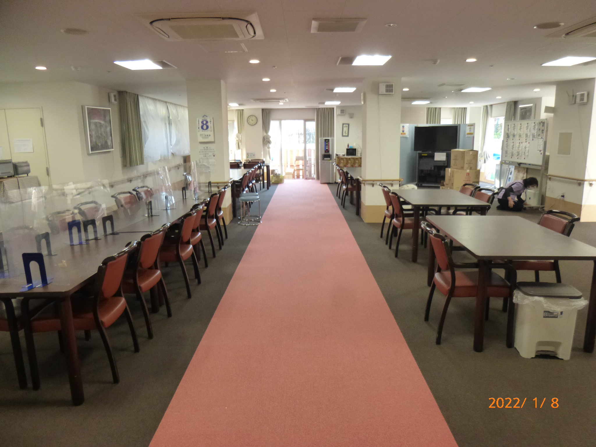 楽リハライフ広島己斐 食堂のカーペットを本日張替えさせて頂きました。
