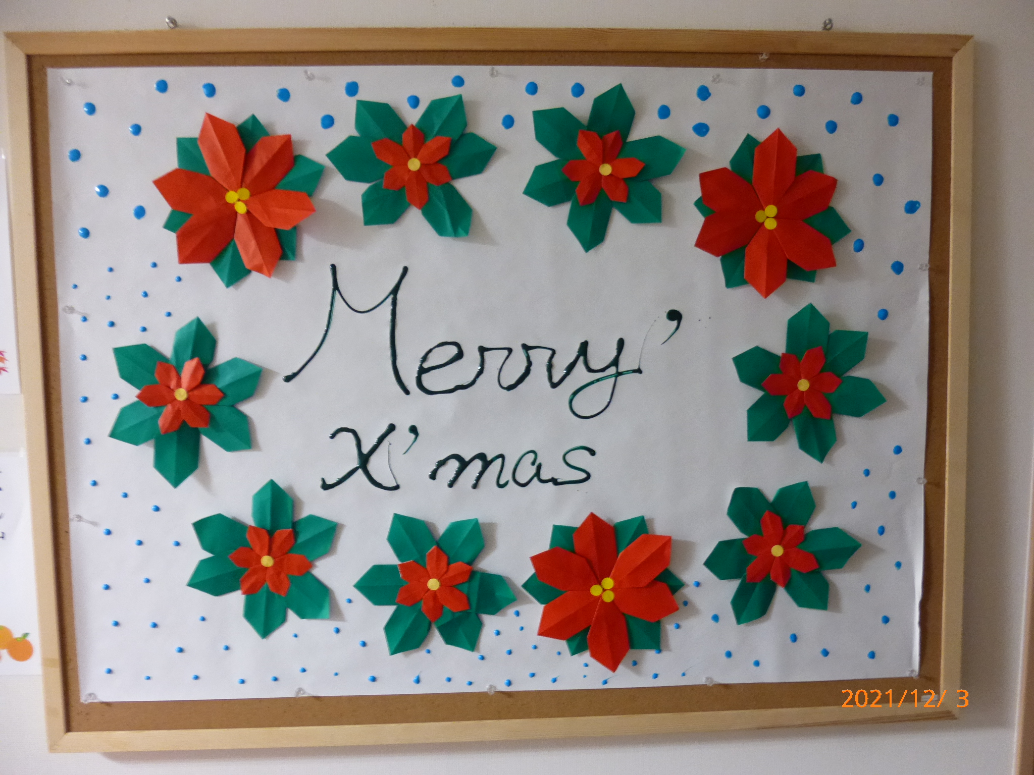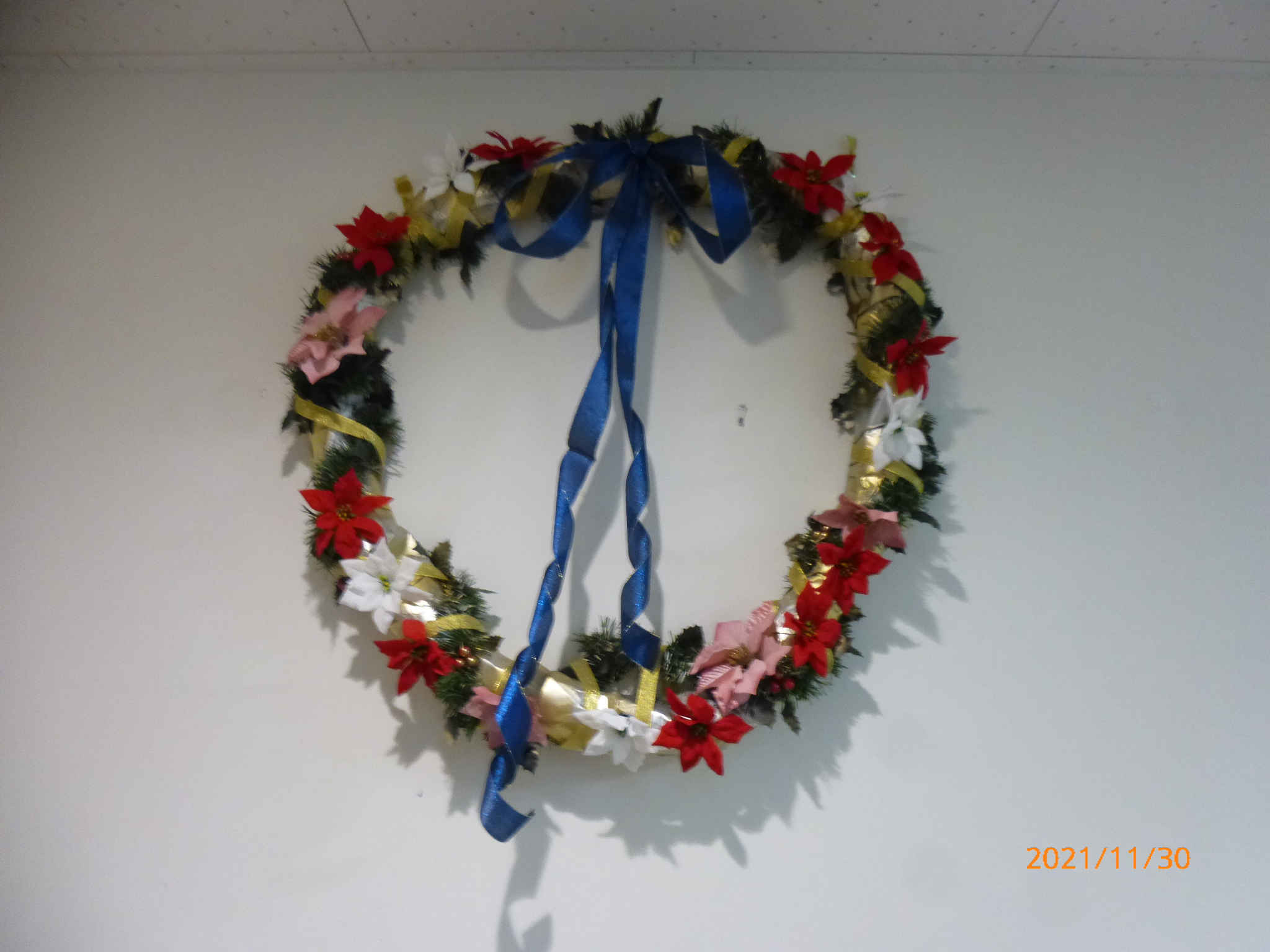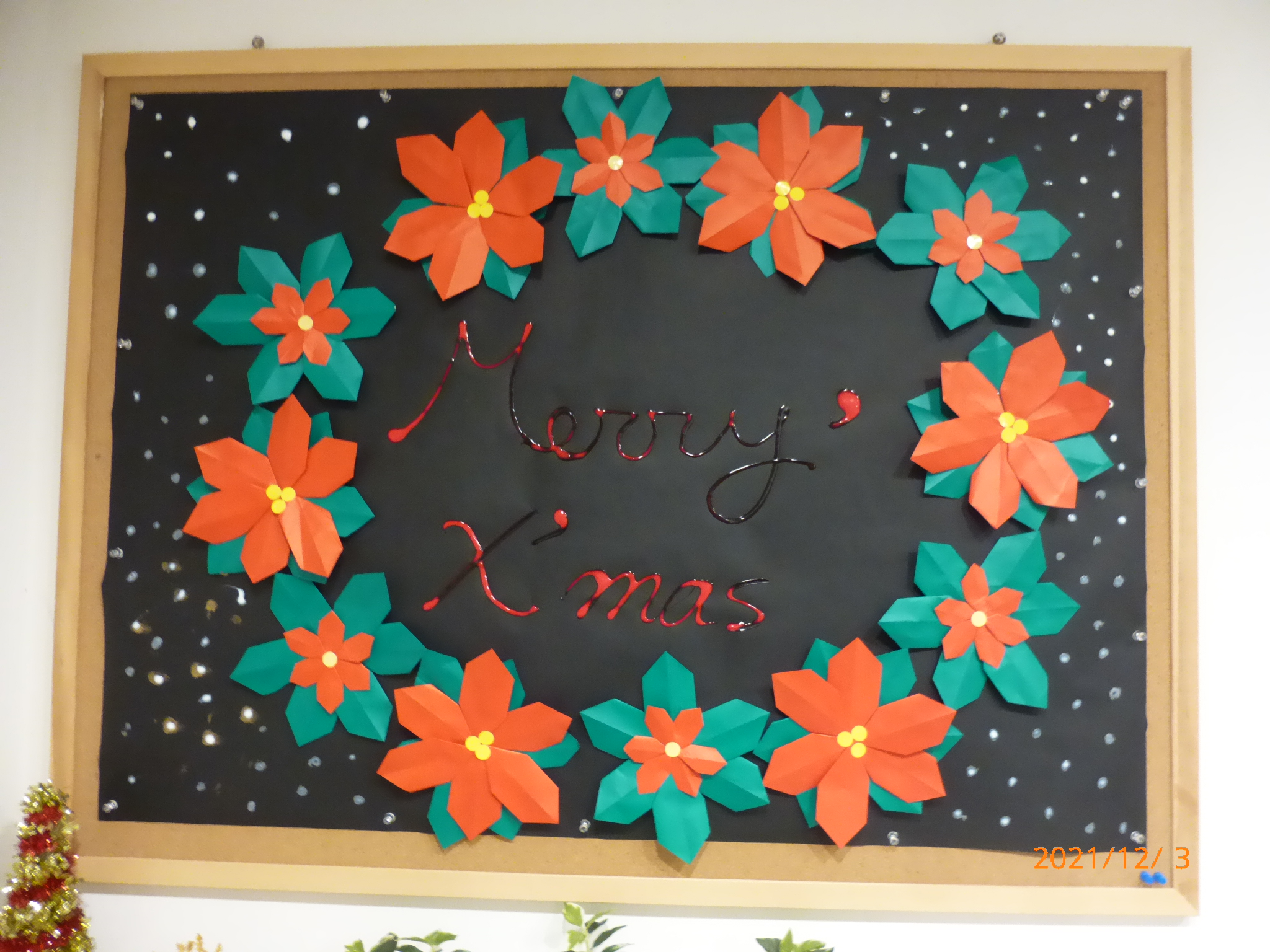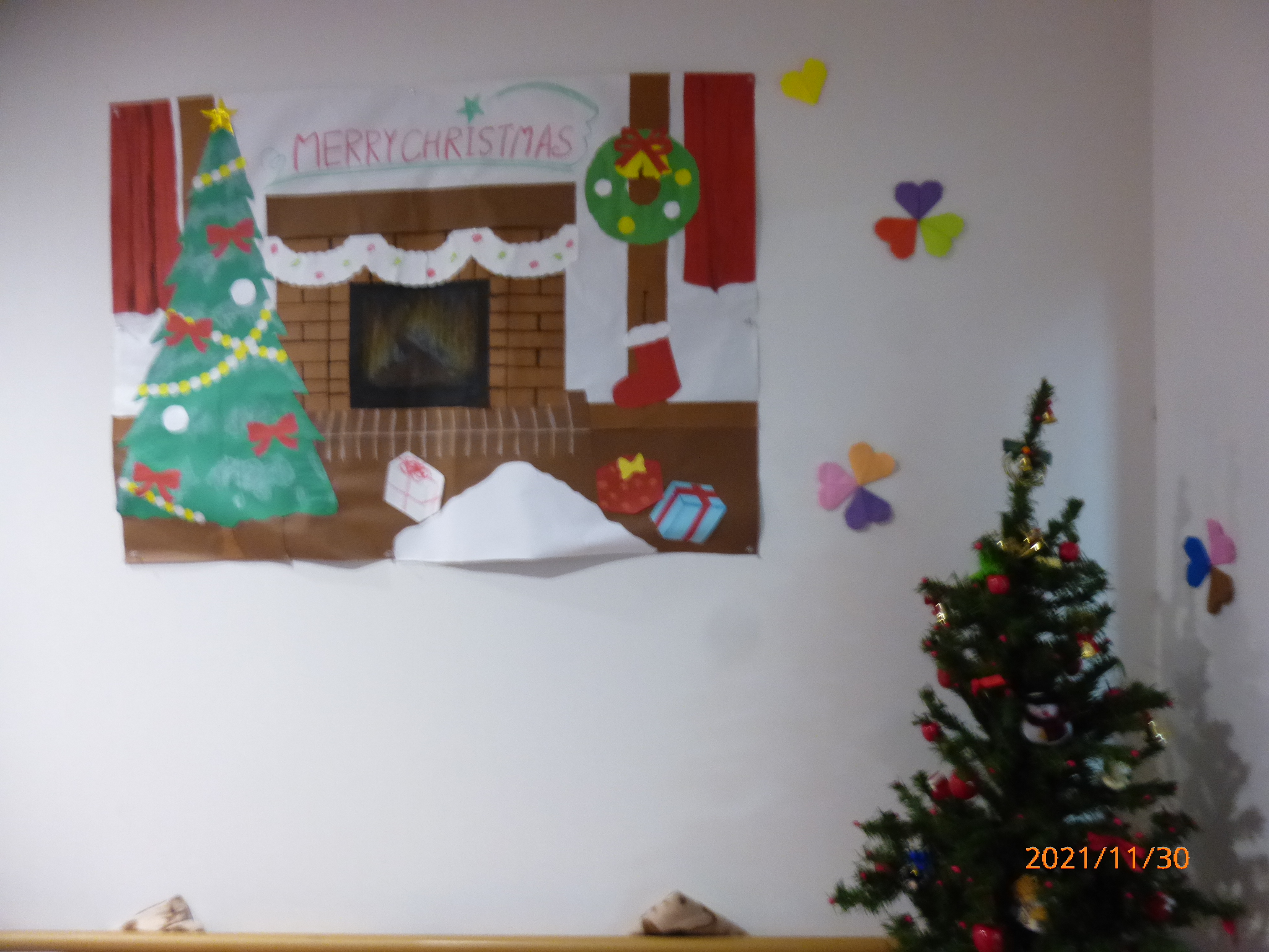 楽リハライフ広島己斐 正面玄関の壁紙がクリスマスバージョンにリニューアルされましたので