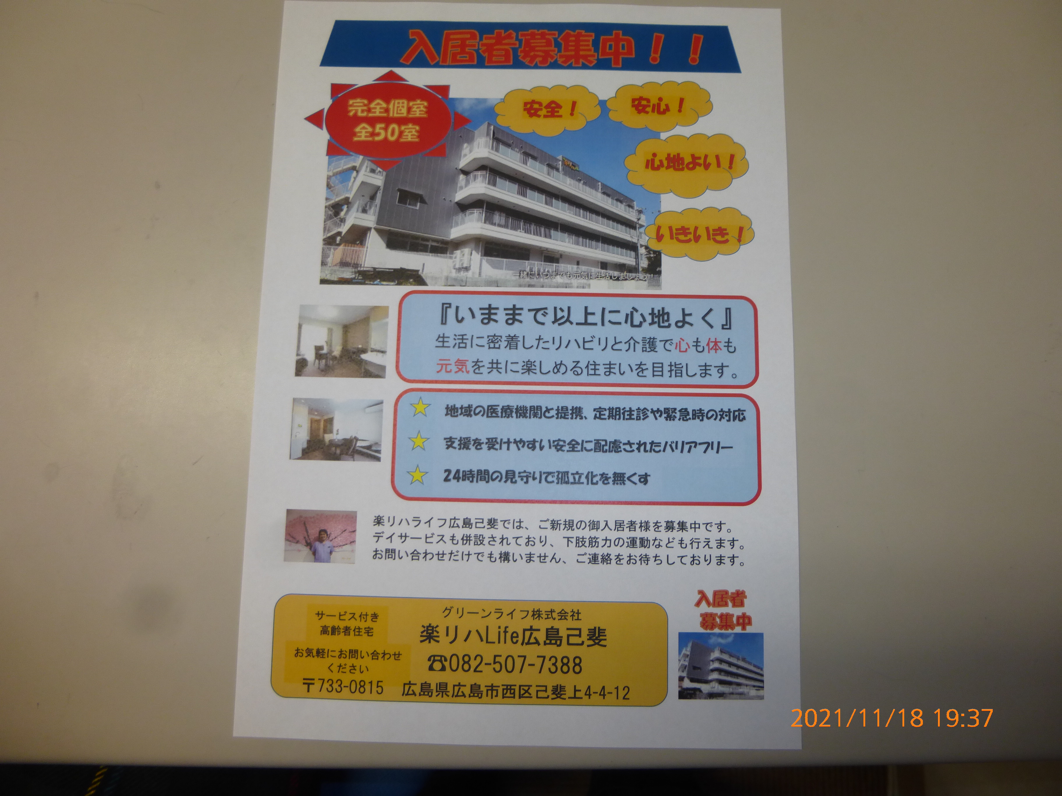 楽リハライフ広島己斐では空室が2室あり、御入居者様を募集しております。