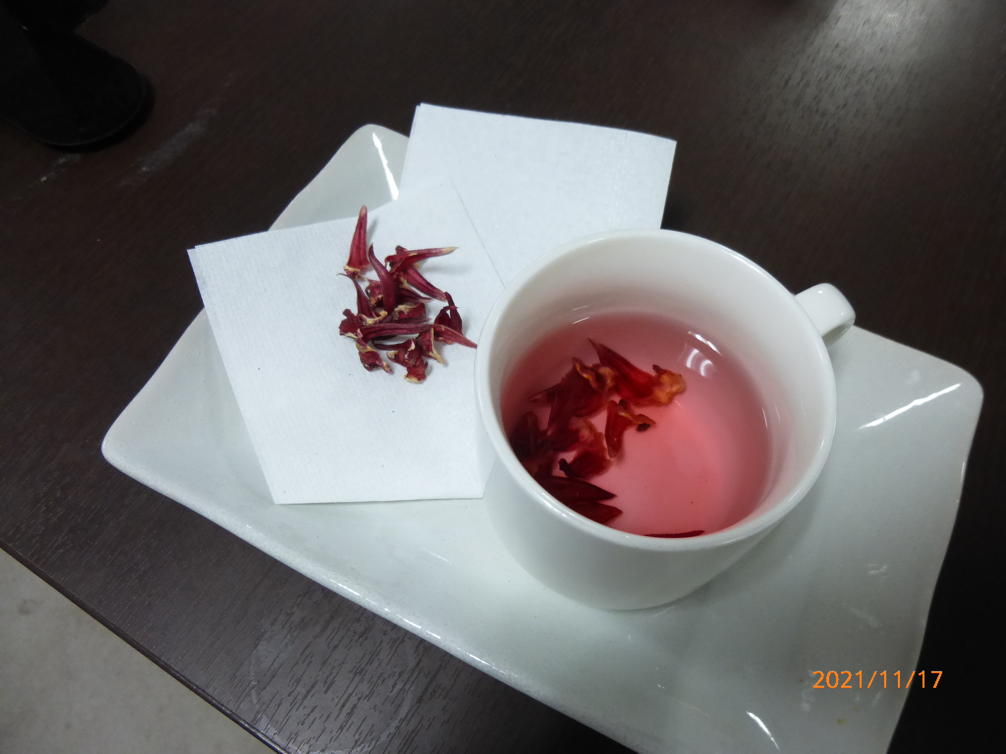スタッフ手作りのハイビスカスティーで一息入れておられました。