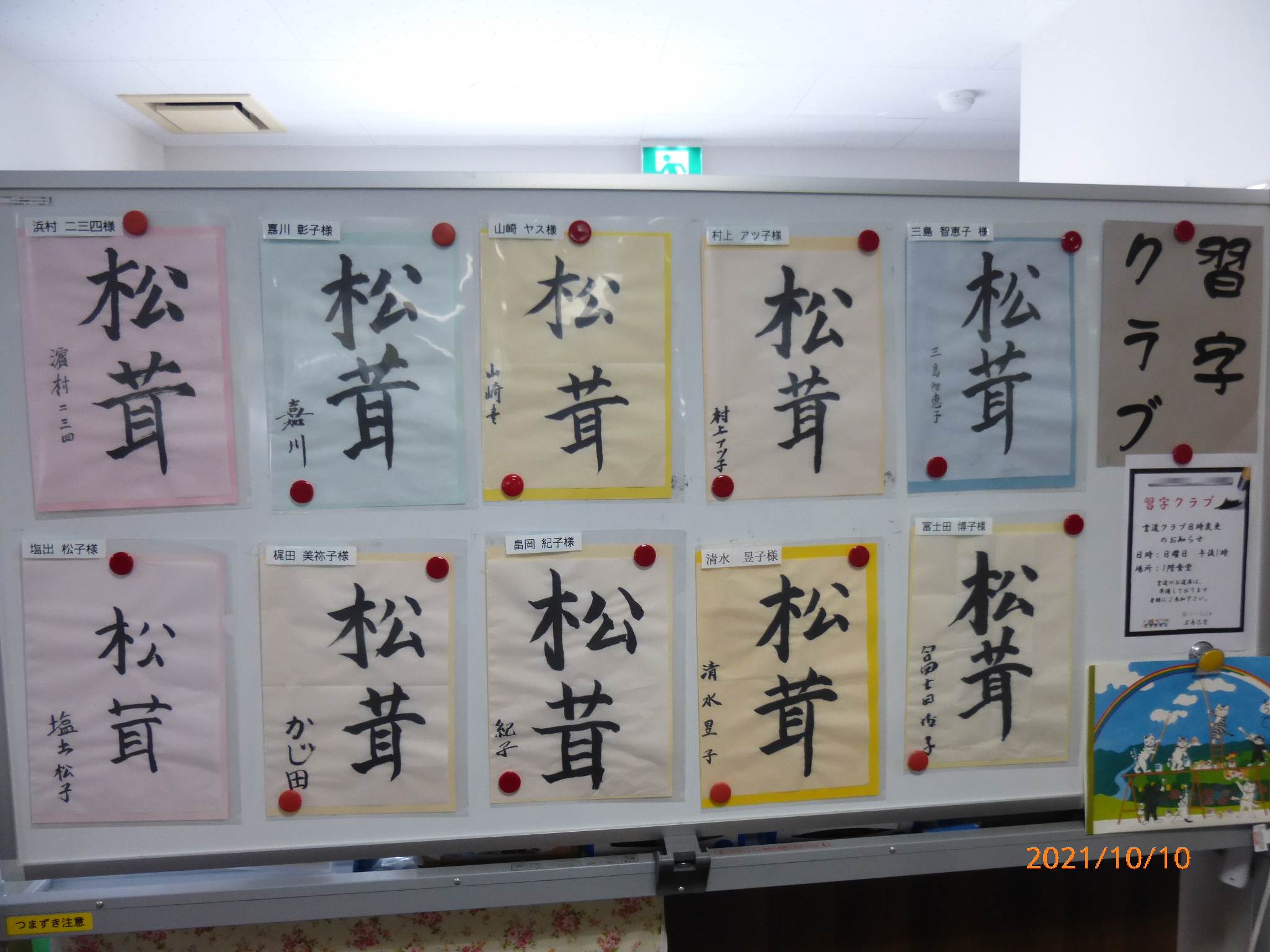 楽リハライフ広島己斐では、毎週日曜日に習字クラブを開催しており