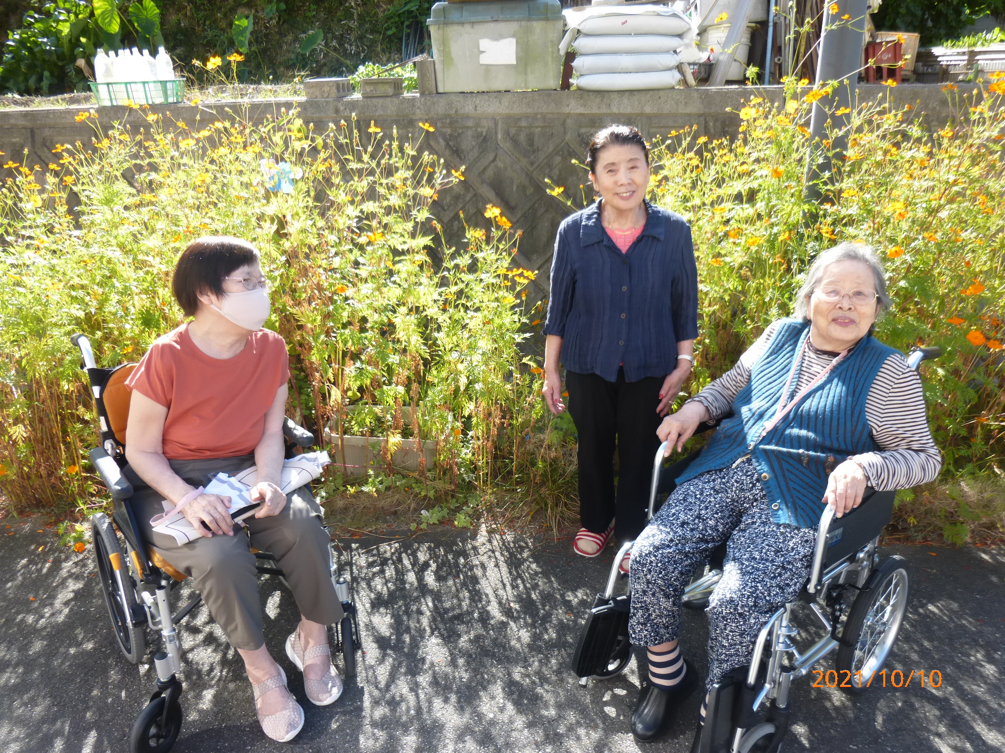 3名程で外の花を見ながらひなたぼっこをされていました。