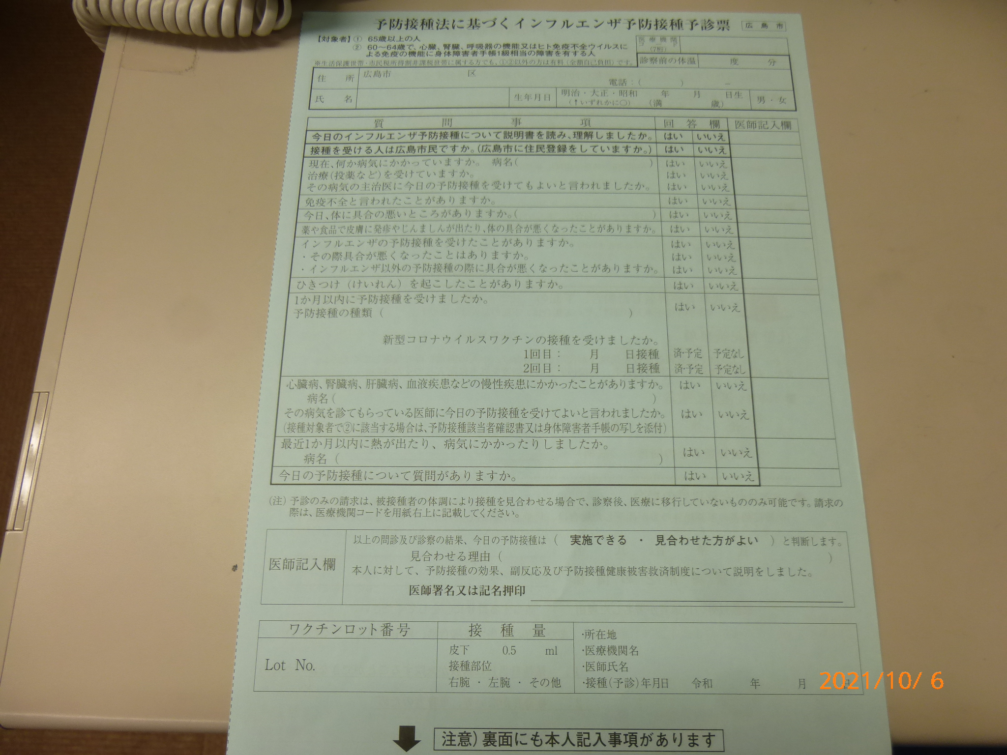 そんな中、楽リハライフ広島己斐では 入居者様・職員のインフルエンザ予防接種を10月15日~開始することとなりました。