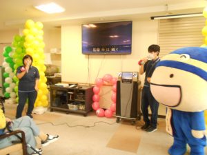 職員と一緒に万博70や大阪万博2025テーマ曲を一緒に歌ってくれました!
