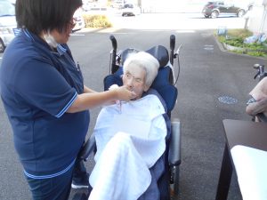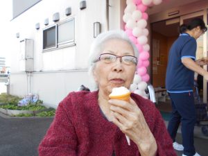 お昼には入居者の皆さんもアイスやからあげ、お好み焼きなど食べていました。