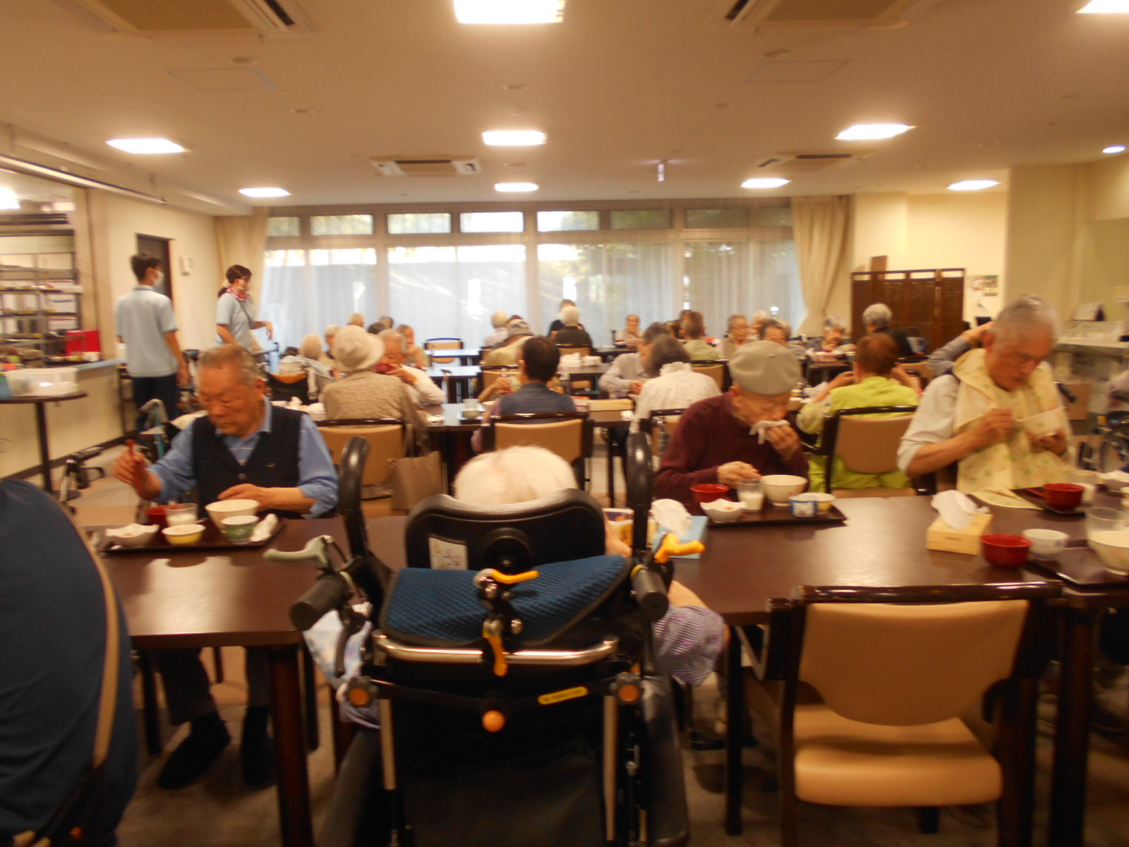 認知症の方や車いすの方も多く忙しく大変な仕事でありますが