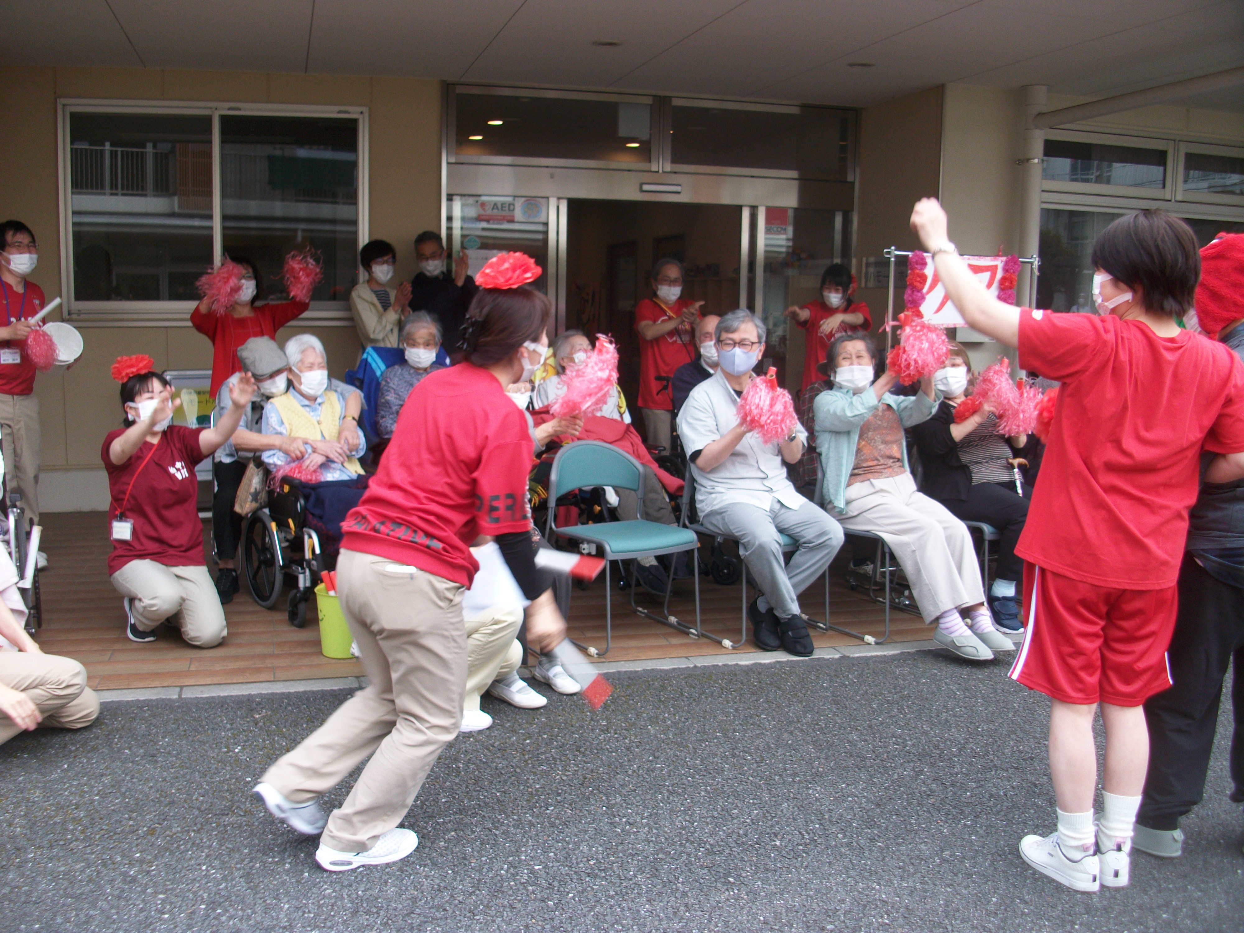 大きな声と、各事業所それぞれ特徴があって、当日までに利用者様・入居者様と一緒に練習したようです!