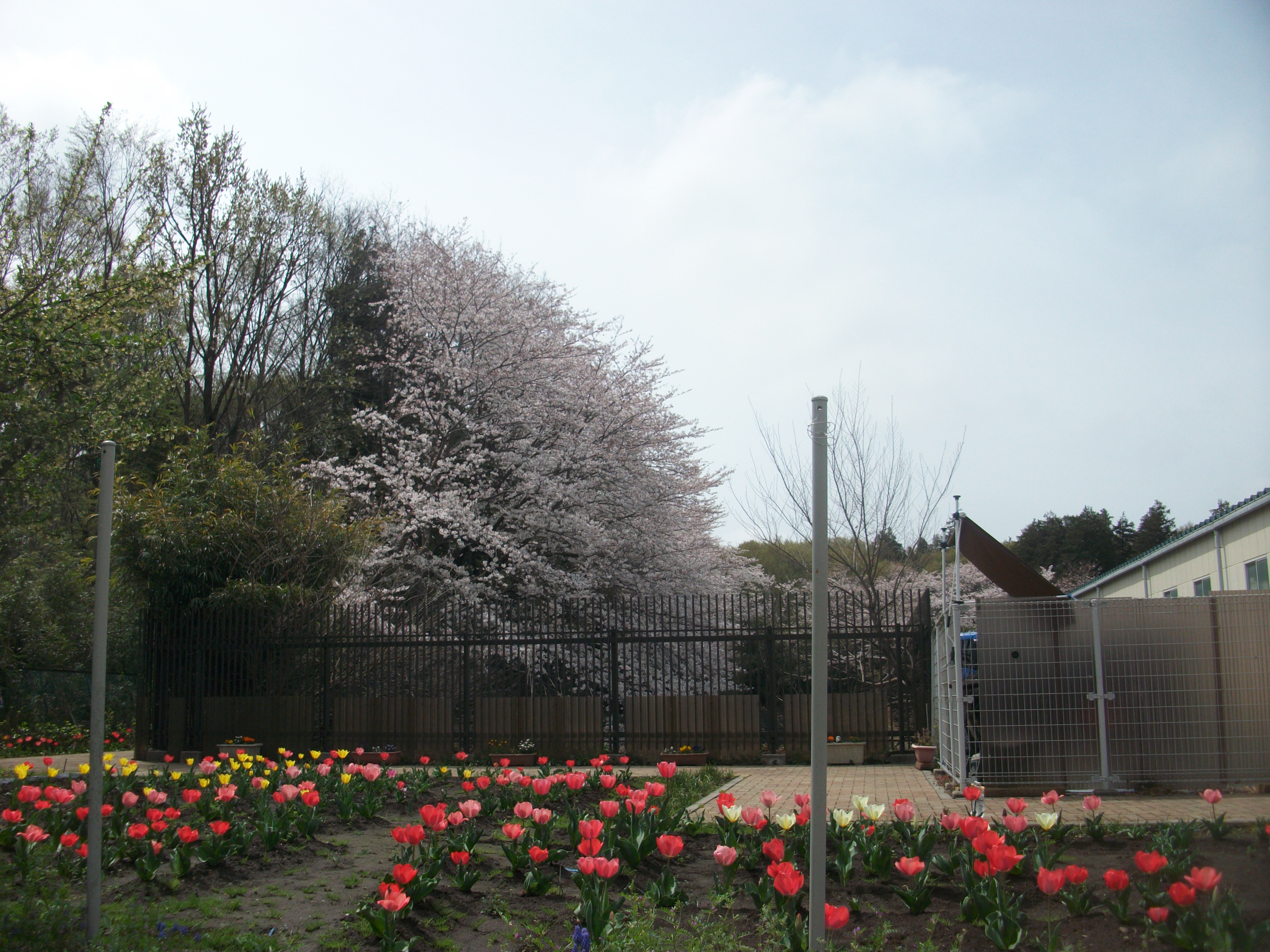 遊歩道の🌸と畑の🌷が一緒に満開です!