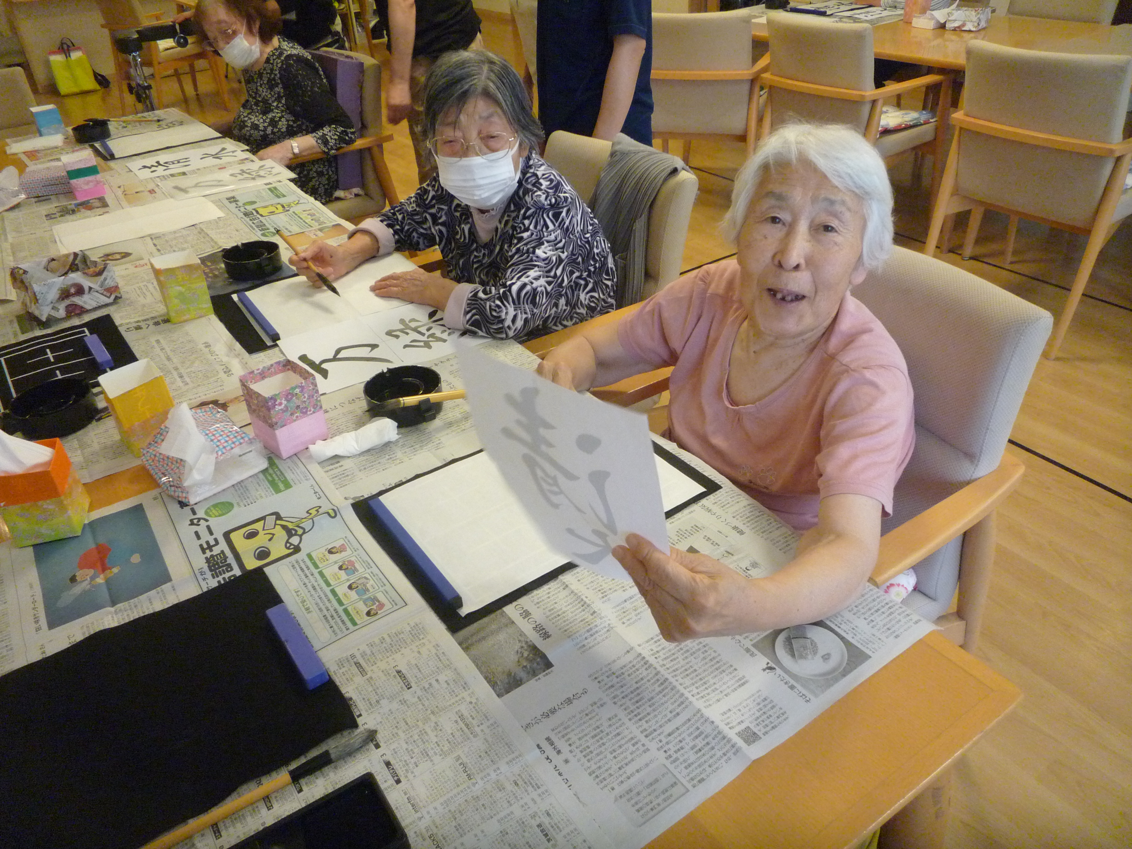デイサービスの利用者様が着付けをしてくれて、浴衣で記念撮影です!